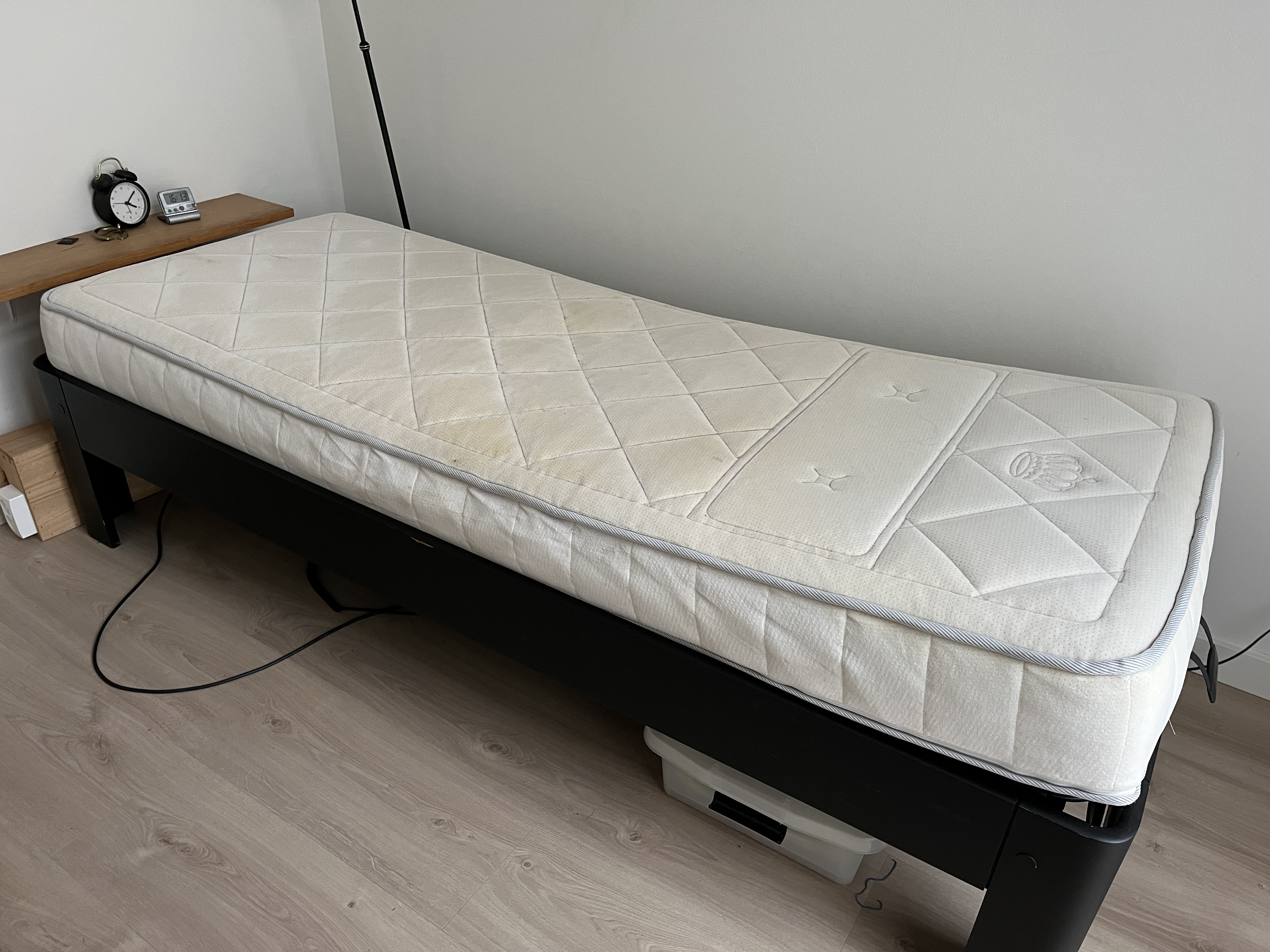 Auping single bed with mattress. Free pickup in Amsterdam on the following days: Sunday, December 7th, from 12:00 PM to 4:00 PM, Sunday, December 14th, from 12:00 PM to 4:00 PM, and Saturday, December 20th, from 12:00 PM to 4:00 PM.