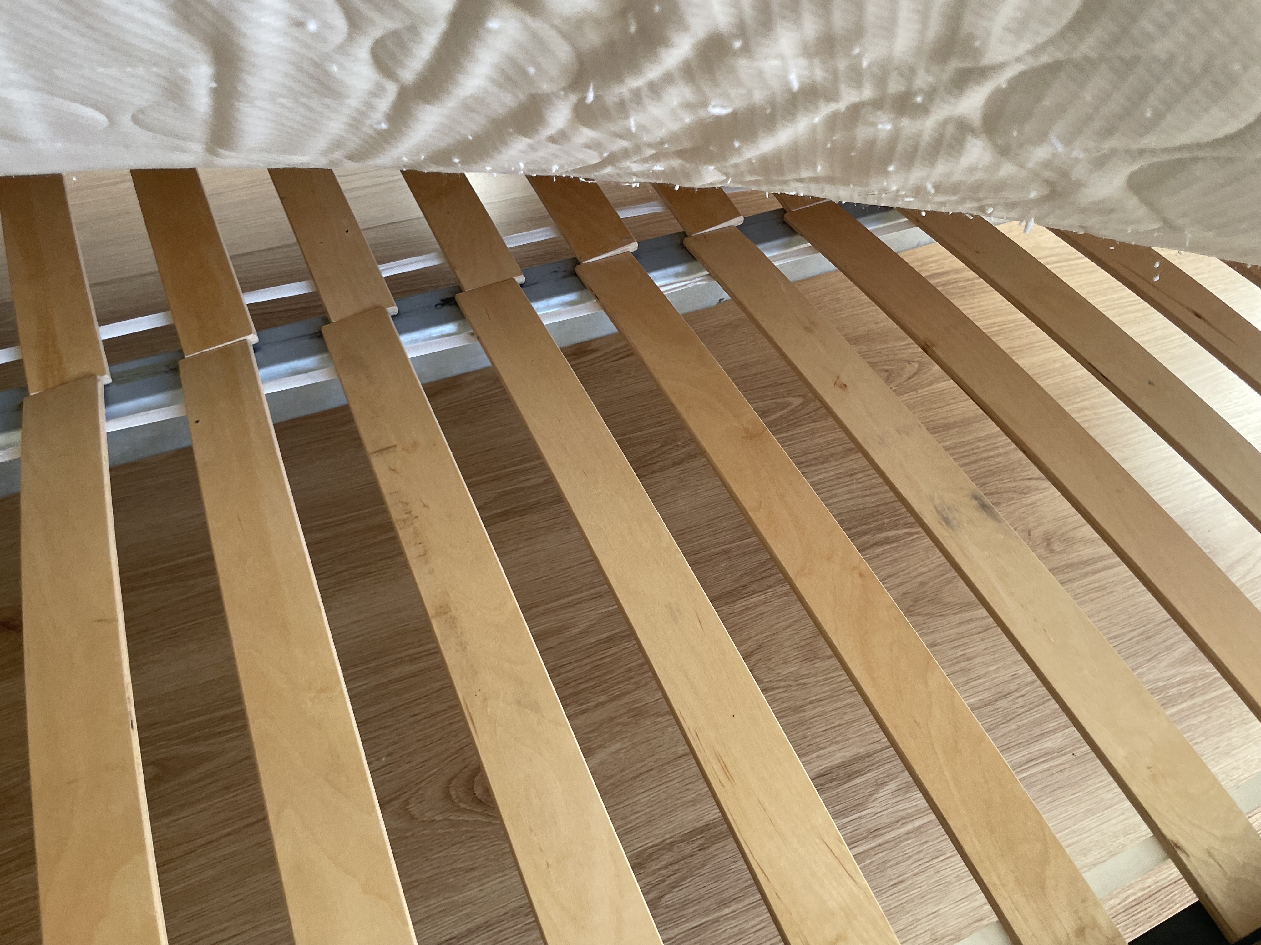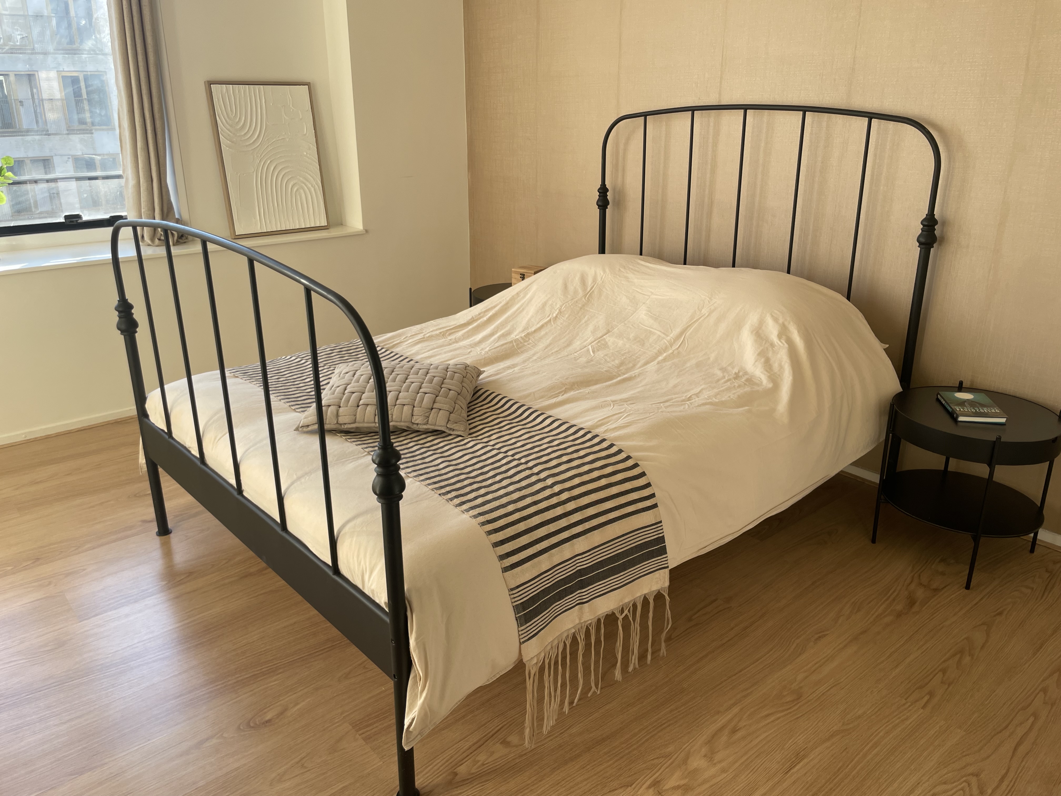Bed 140 x 200 with slatted base and mattress. Pick up by January 18th.