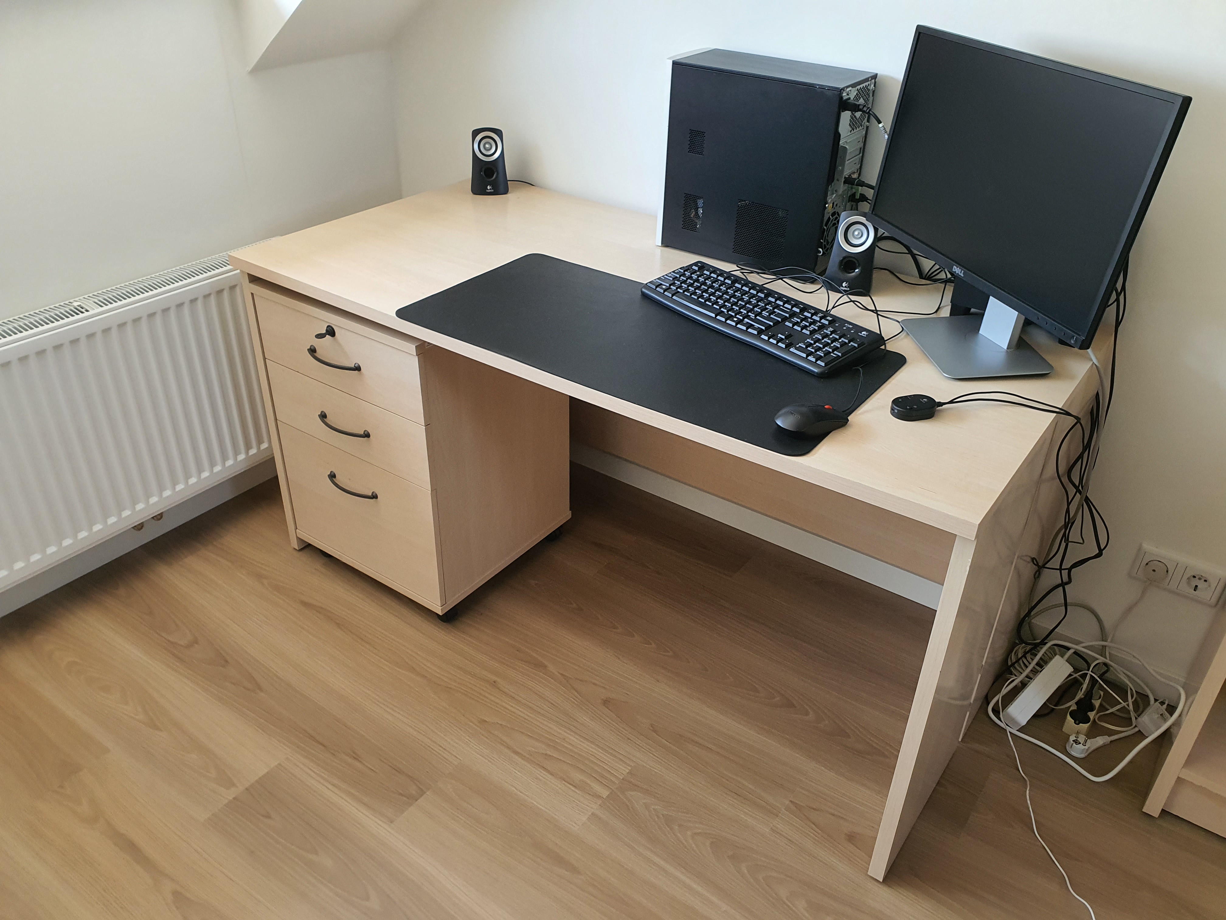 Complete set consisting of a desk with drawer unit, a bookcase, and a chest of drawers. The desk offers ample workspace, and the drawers provide storage. The bookcase is ideal for storing books and other items. The chest of drawers can be used for various purposes. The set is in good condition. Desk with chest of drawers 150x75x75 cm Bookcase 95x32x216 cm Chest of drawers 95x45x75 cm