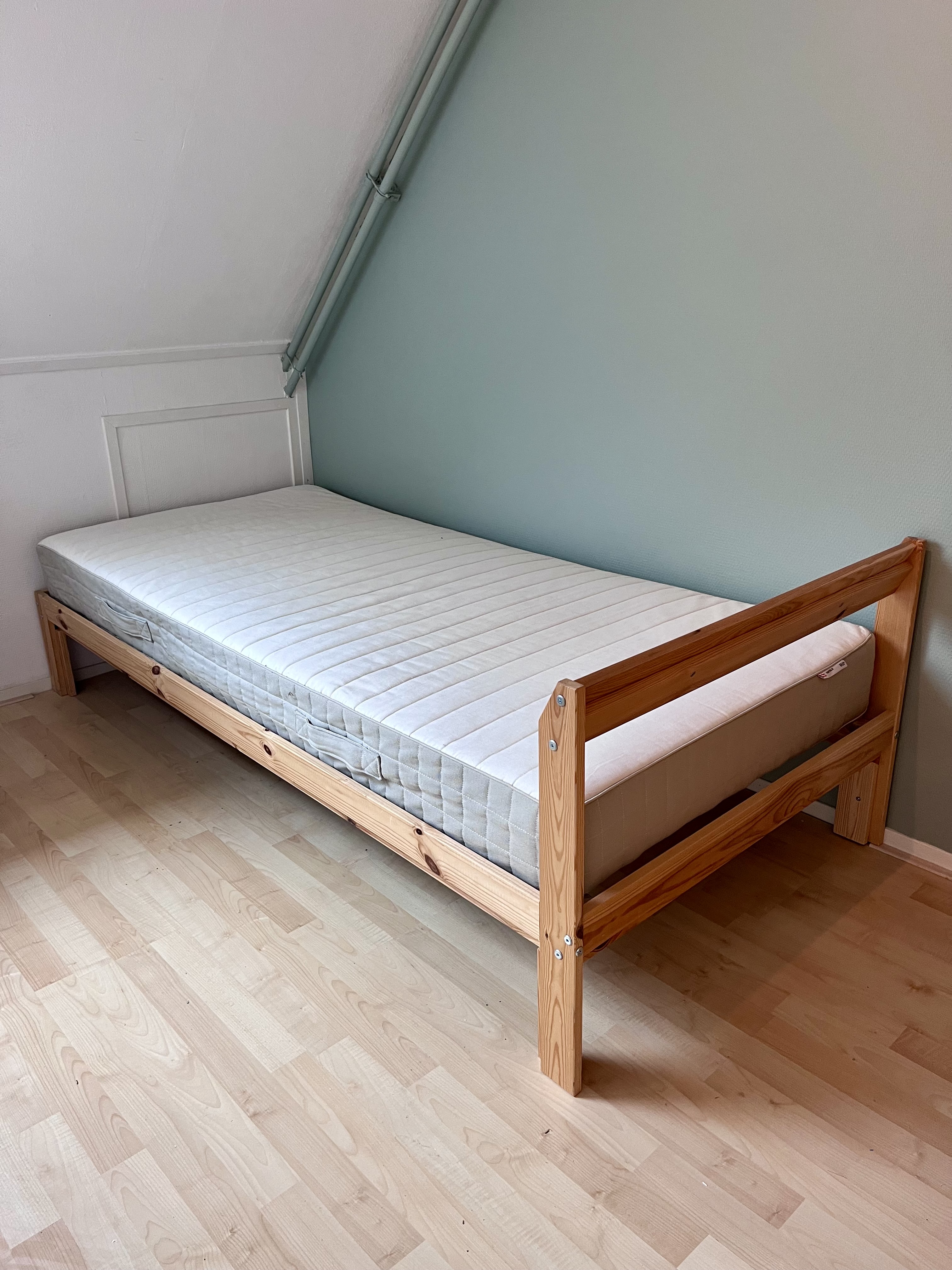Available for pickup in Meppel: single bed with mattress. The bed requires reassembly, as it is currently disassembled.