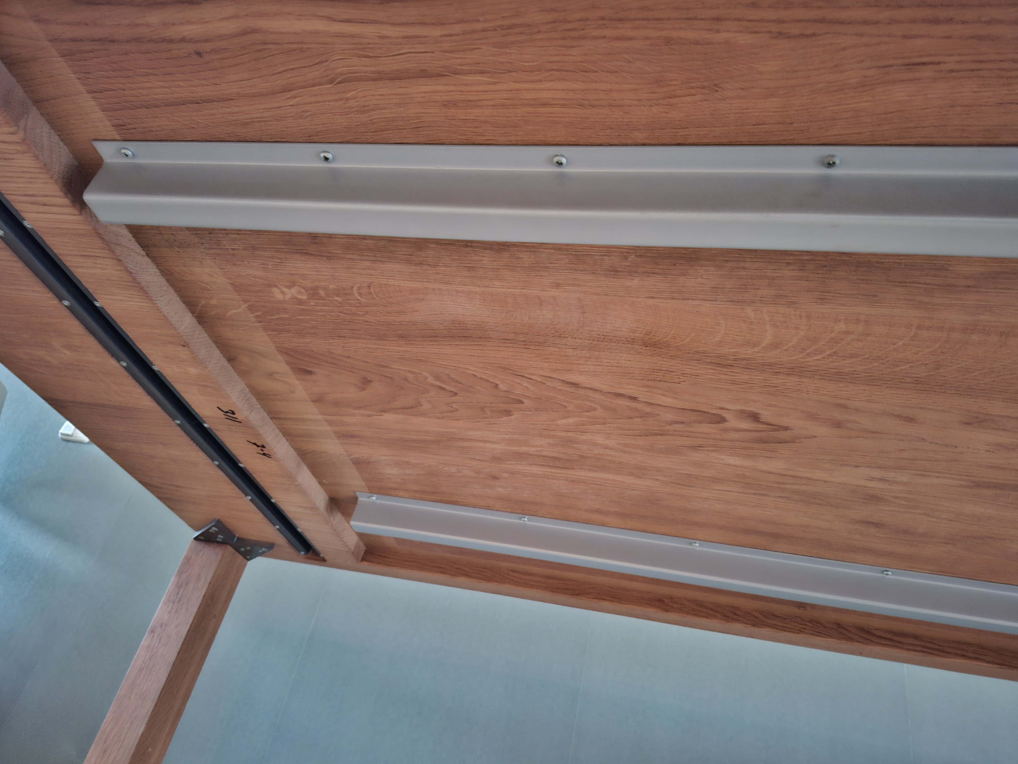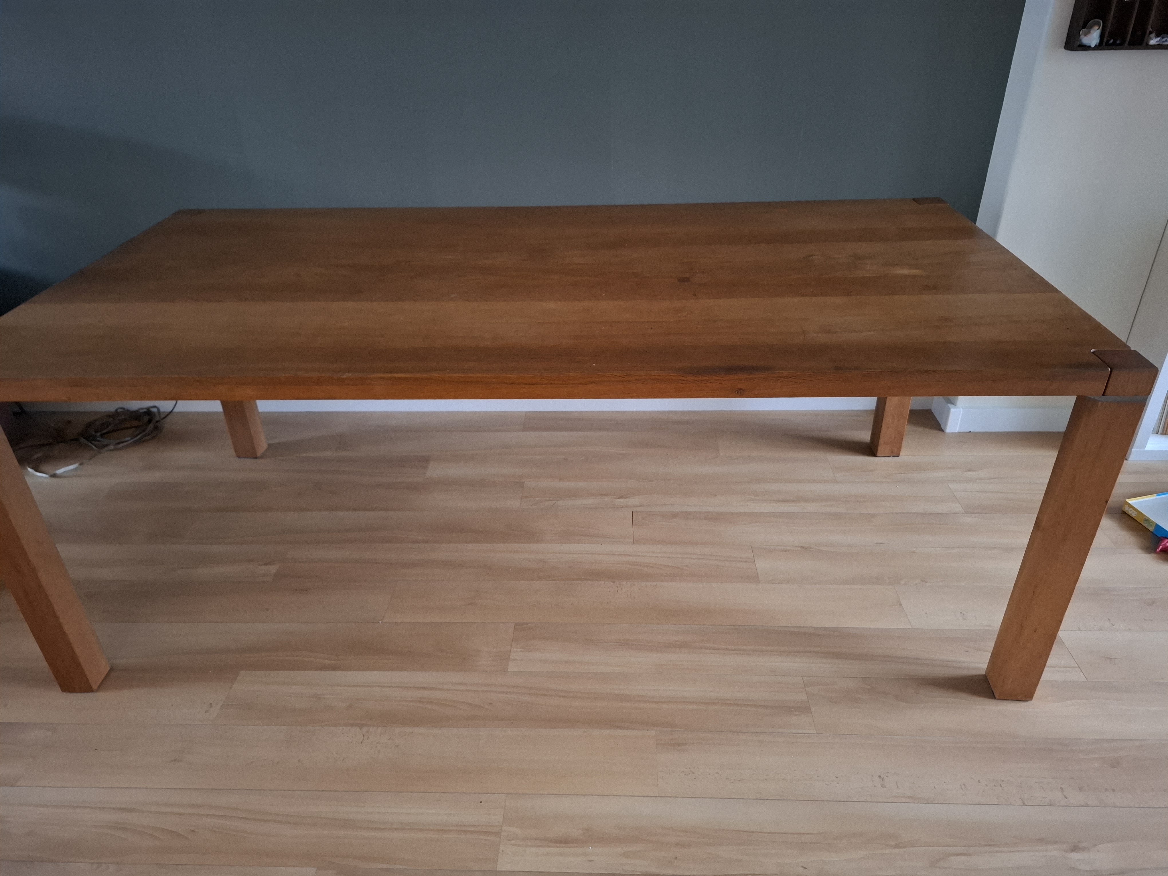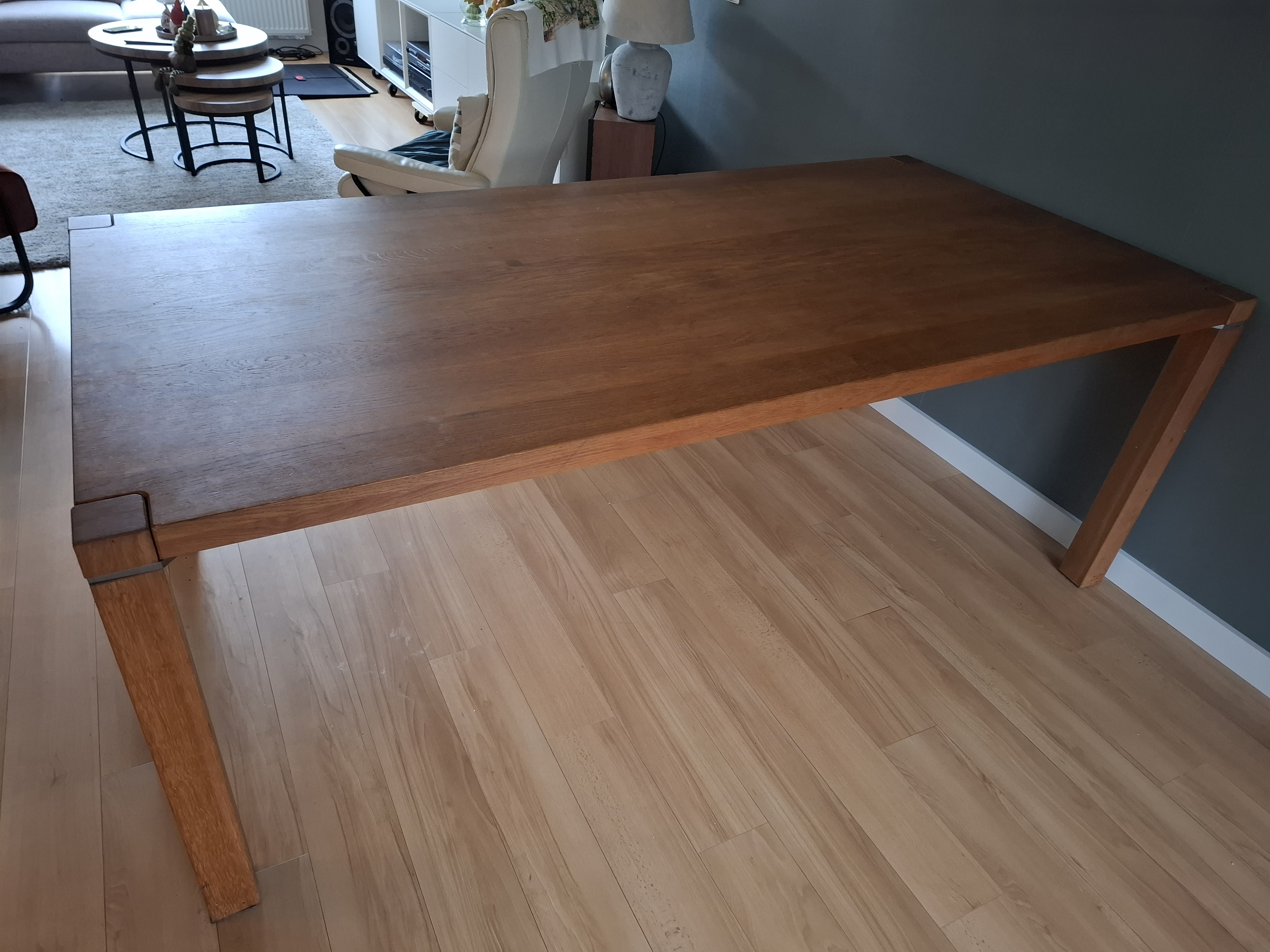 Dining table: Material: Wood. Length: 200 cm. Width: 100 cm. Height: 75 cm. In good condition, with some minor signs of wear.