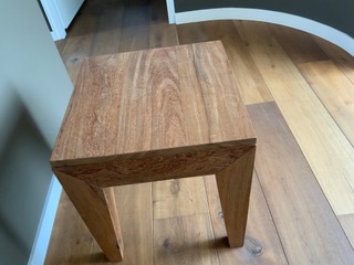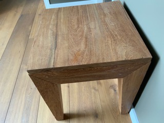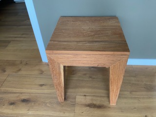 Beautiful solid oak table. Dimensions: Height: 57 cm, Width: 45.5 cm, Thickness of the top: 2.5 cm.
