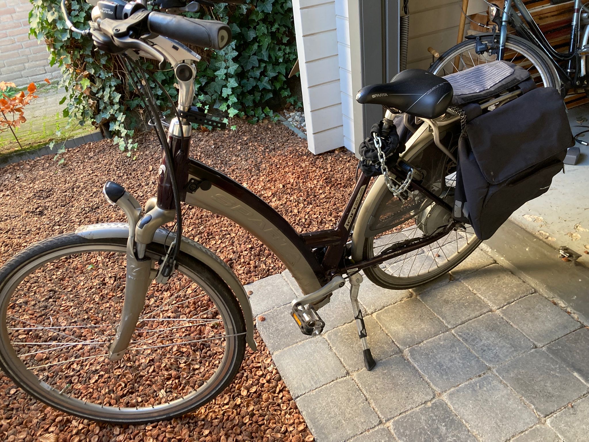 For sale: an electric women's bike with a built-in battery and charger. It still works and rides well, very solid. However, the battery drains less quickly in very cold weather. The bike is over 15 years old.