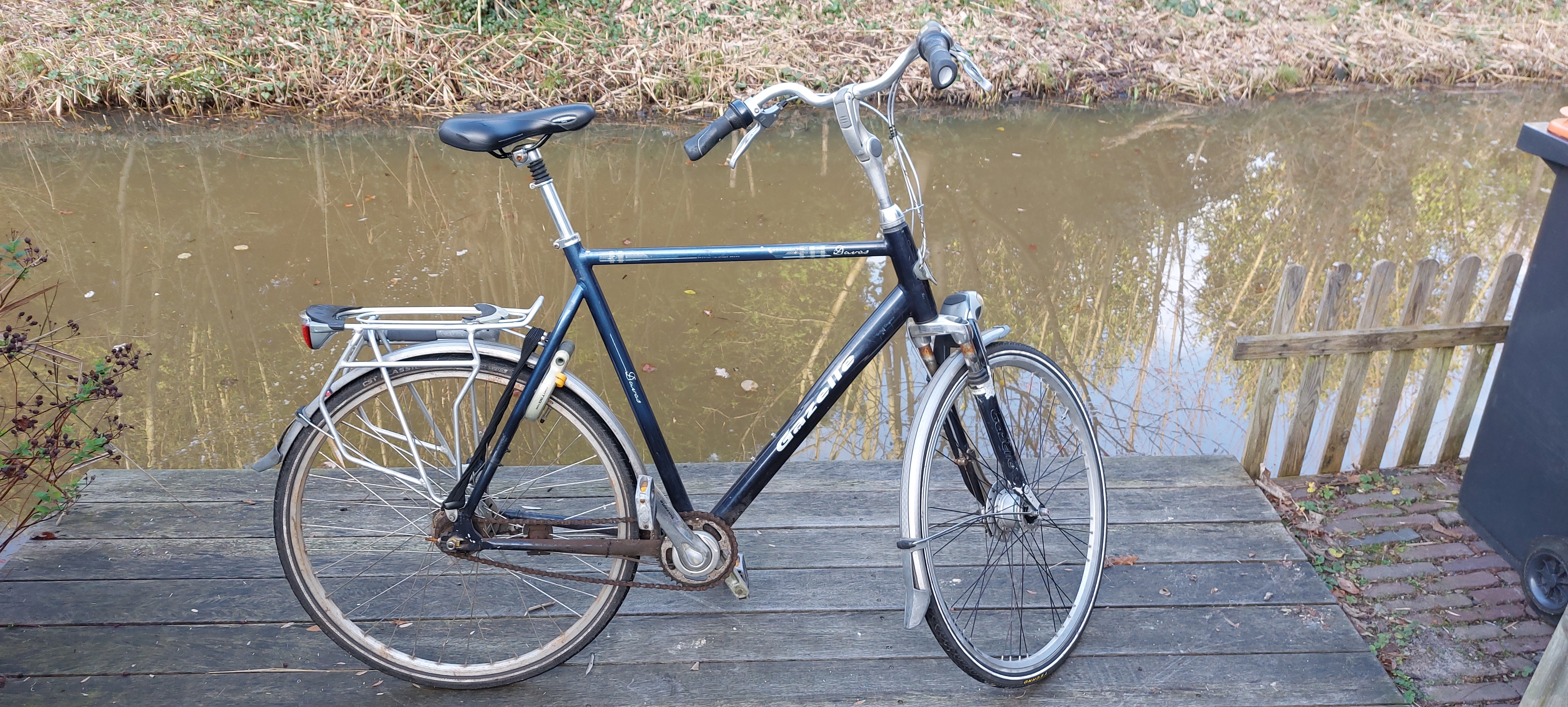 Gazelle men's bike, large frame size (XL). Easy to ride, chain (case) replacement needed. 7 gears, suspension fork/saddle, hub lighting.