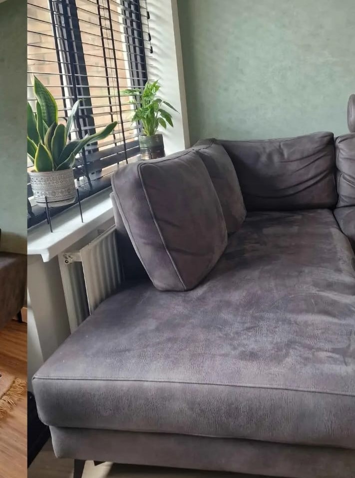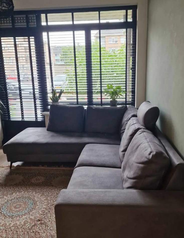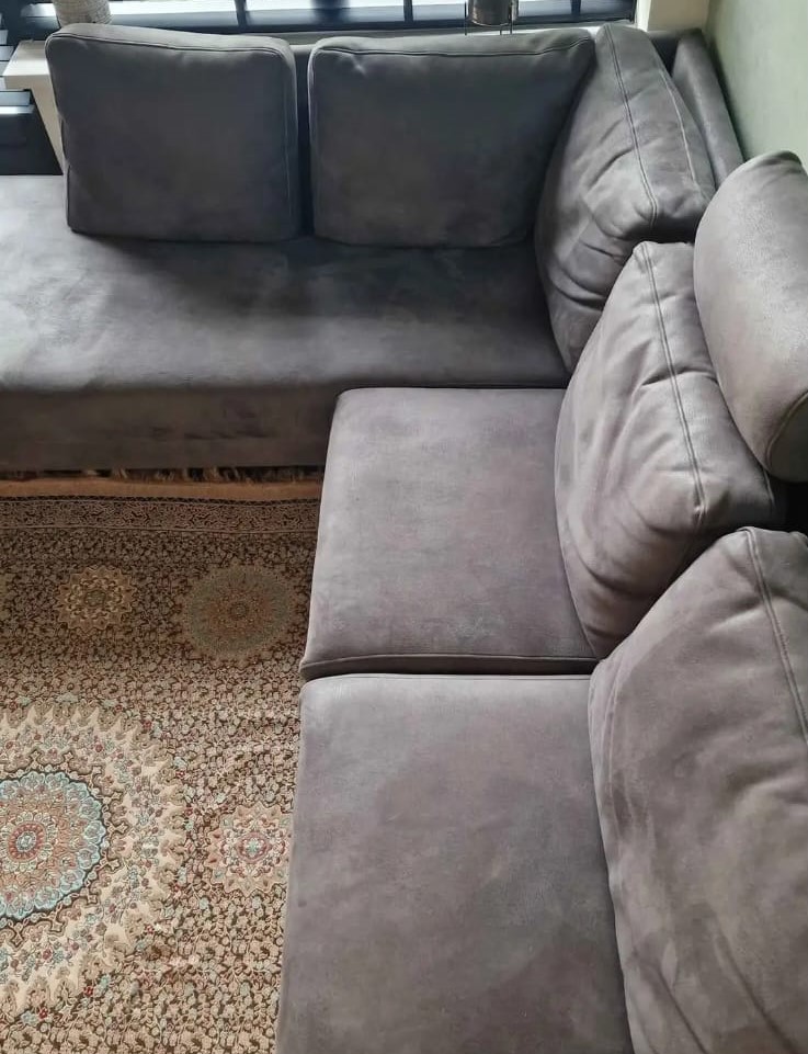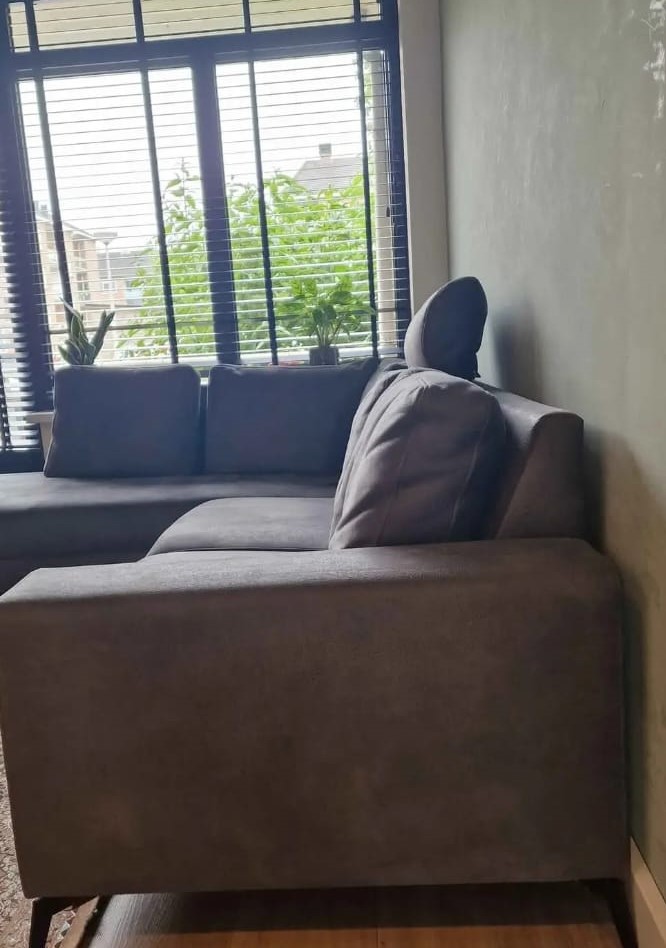 Pronto corner sofa, almost 3 years old. Pronto's ALL-IN-HOUSE service is still valid for about two years. Proof of purchase available. The sofa is still in good condition. Material: Camel LF, which is 60% polyester and 40% leather. Dimensions: 210 x 260 cm. Color: gray.