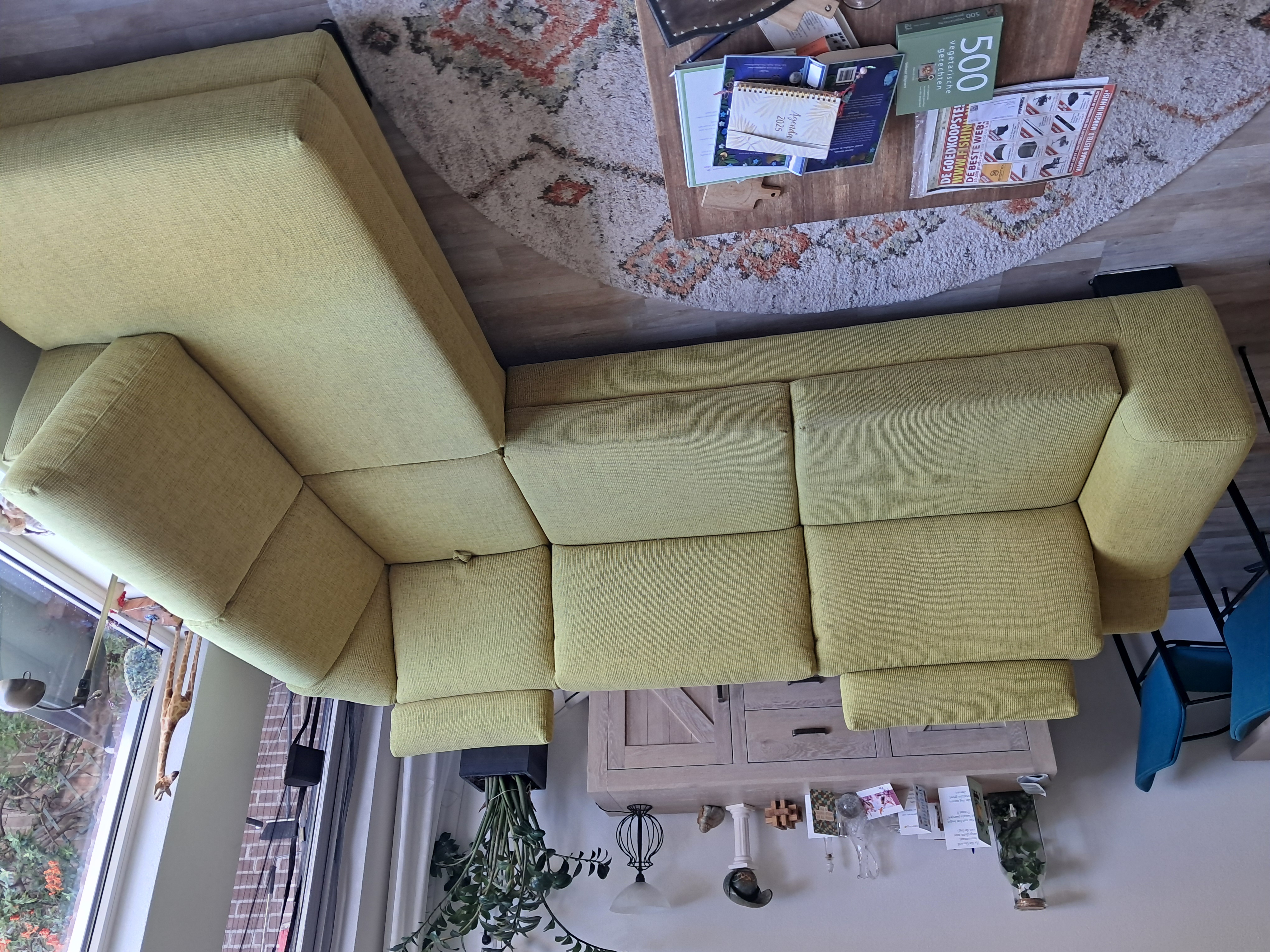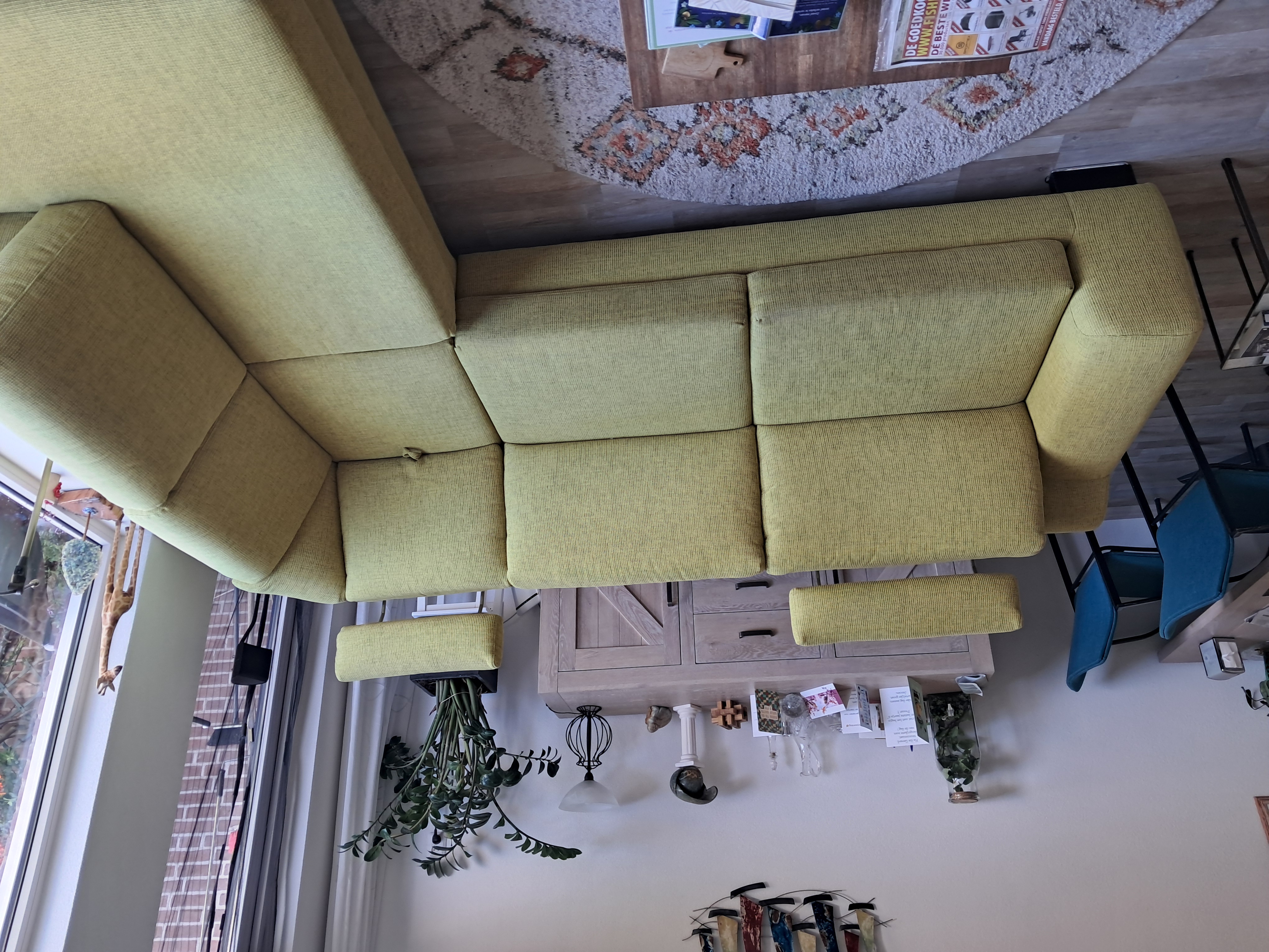 Corner sofa in yellow-green with many options, see the photos