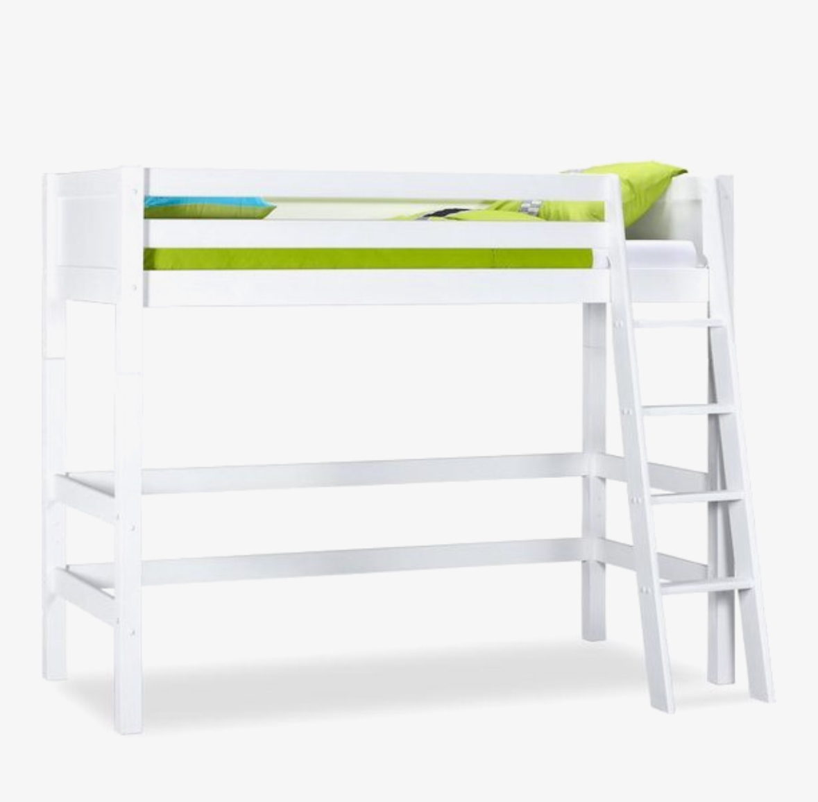 A white loft bed from Beter Bed (Flexworld Jupiter brand). The bed (90x200 cm) can also be used without the base. We also have drawers and a used mattress. The bed has a slanted staircase. Ideal for extra space in a child's room!