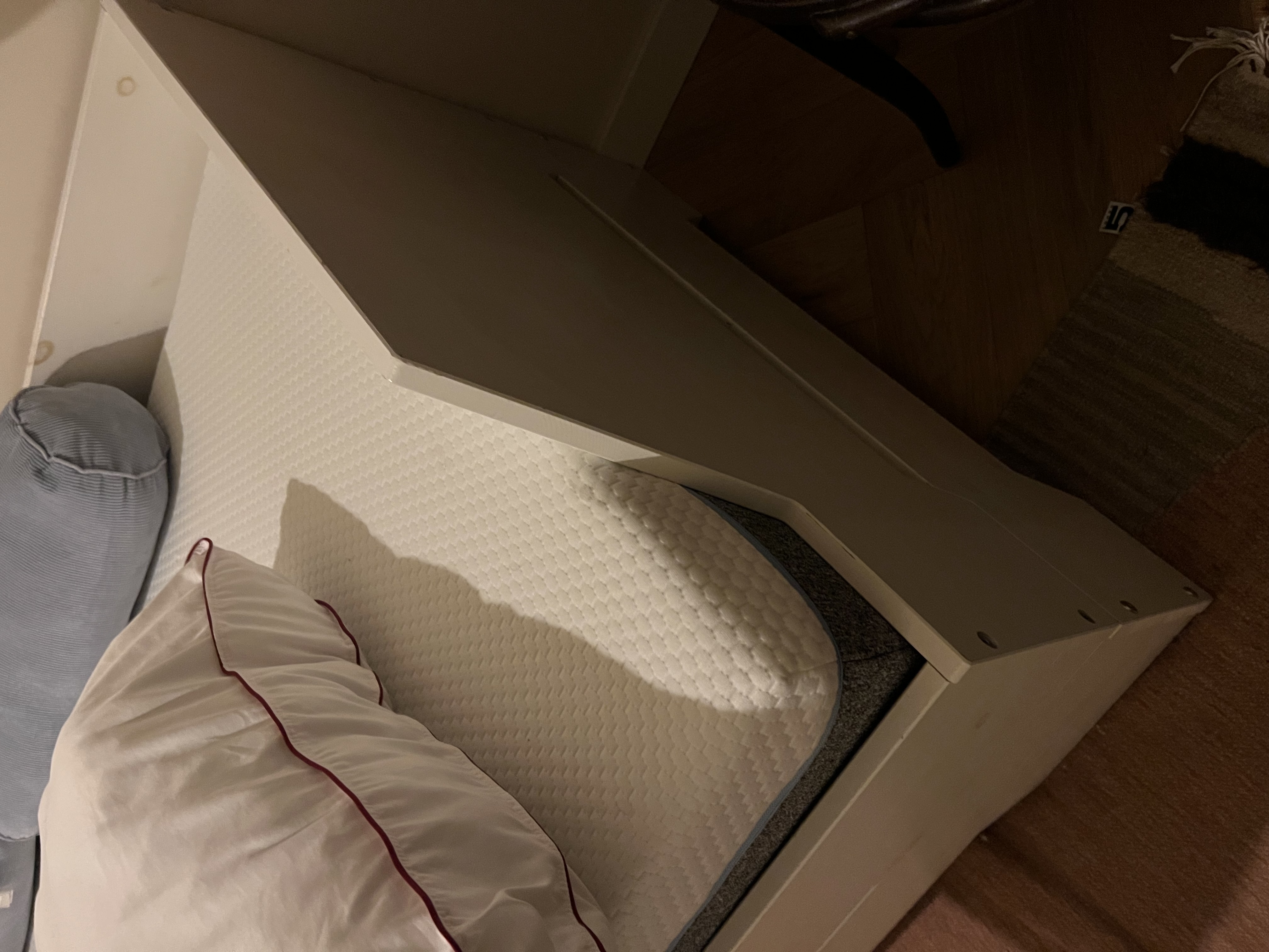 These are two single beds that can be stacked on top of each other (2 X 90 by 200 cm). They are made of heavy wood and in good shape. They are available without the matrassen.