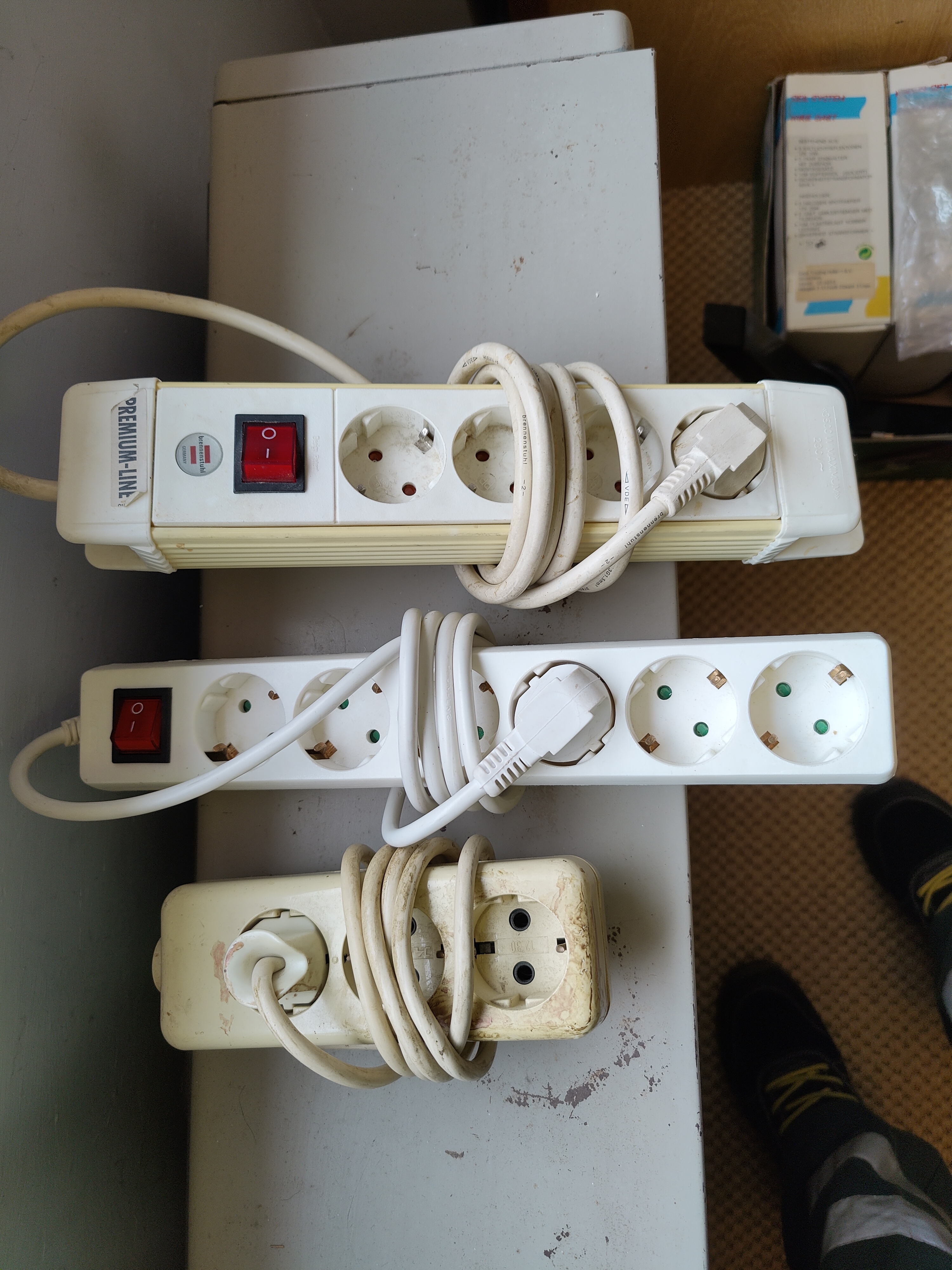 Various extension cords, with and without earth connection. Free collection in Amsterdam.