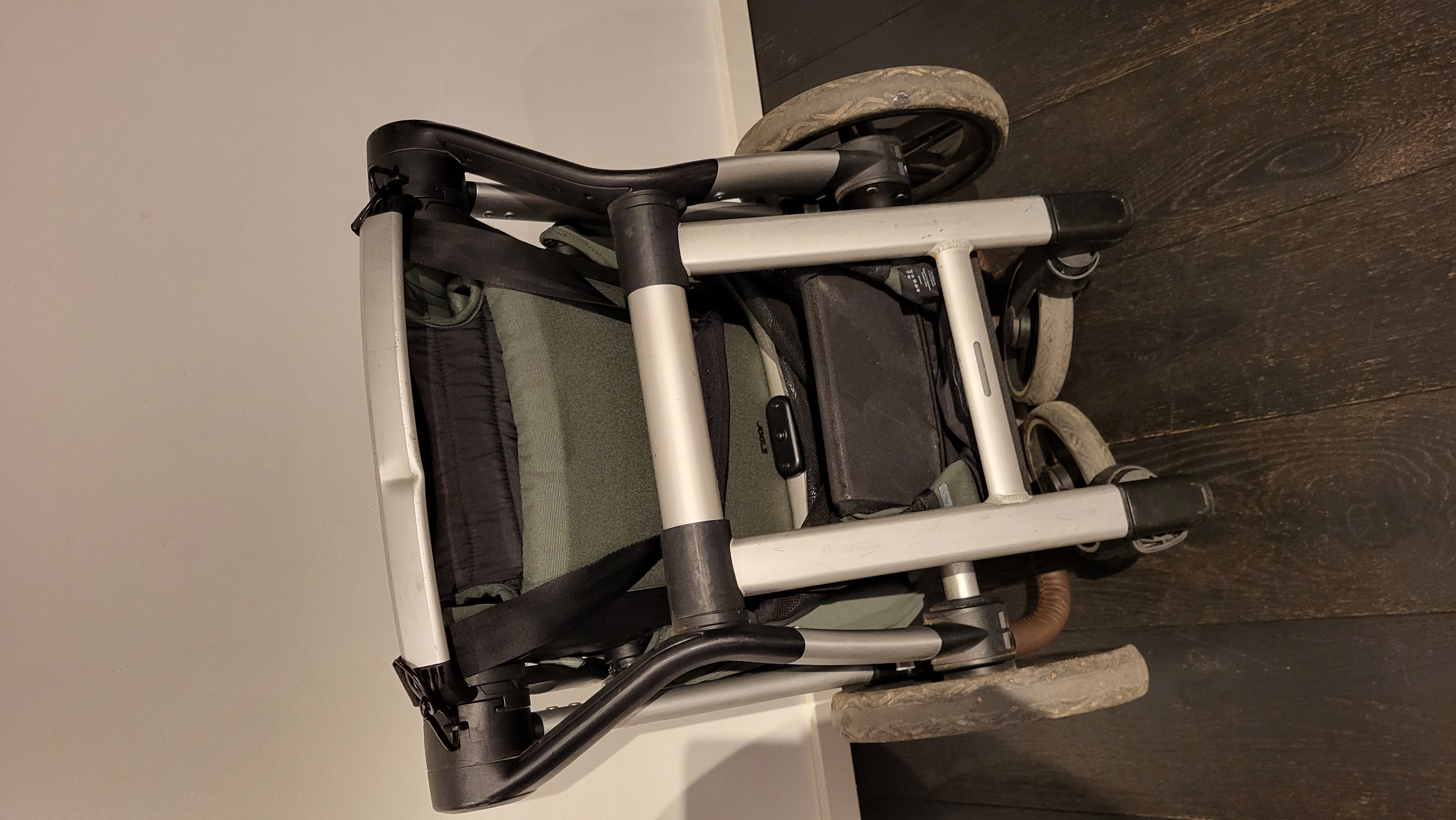 I'm offering my Joolz Hub+ for sale. As you can see, it's been used extensively and has some signs of wear and tear. One shoulder pad is missing, but it's safe to use. The color is marvelous green.