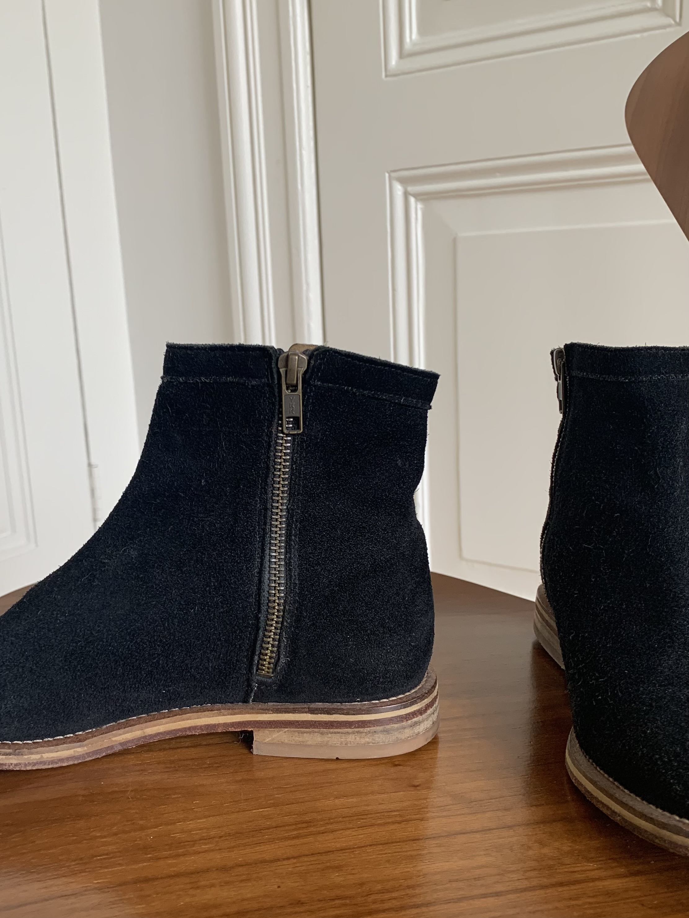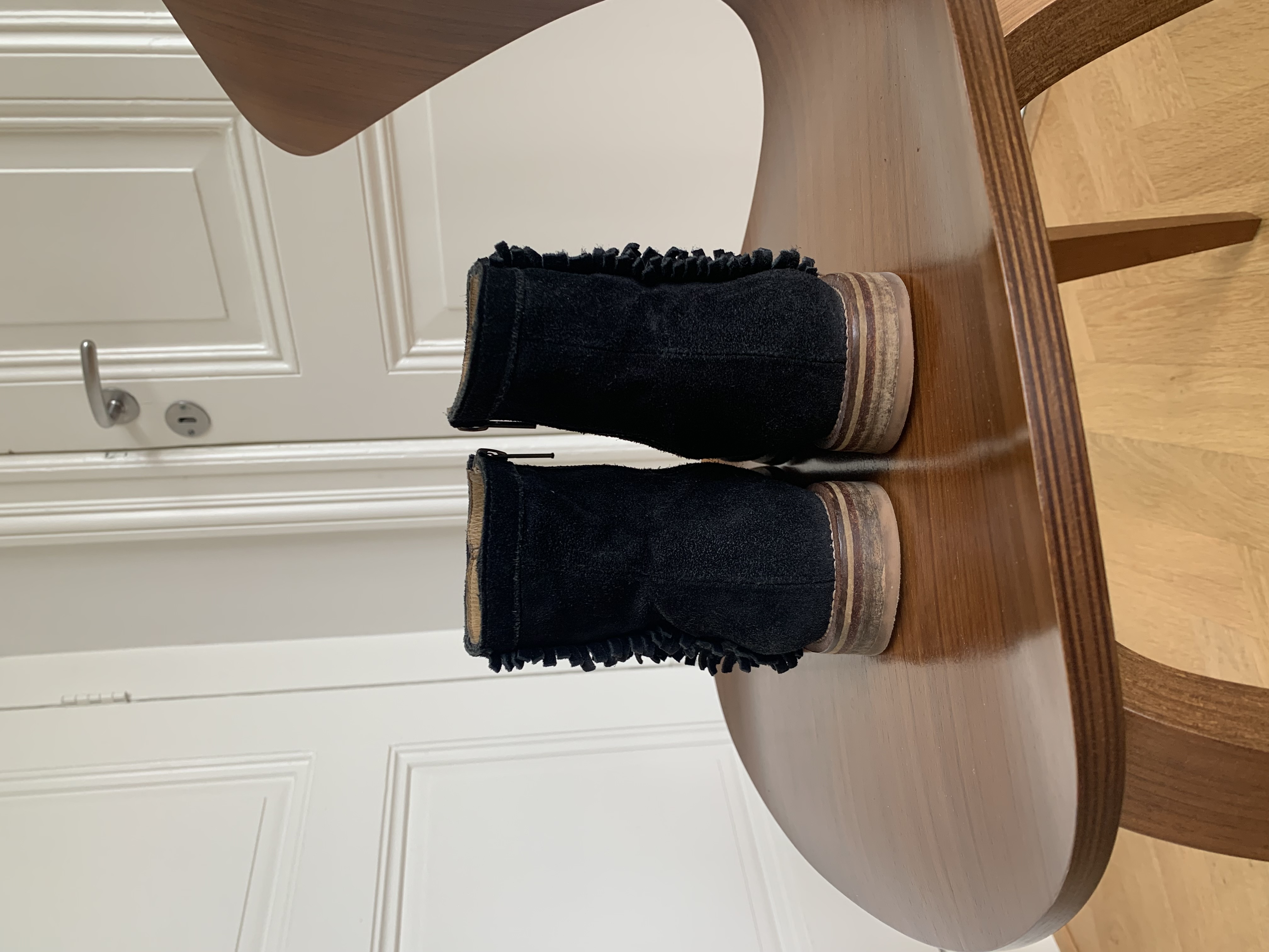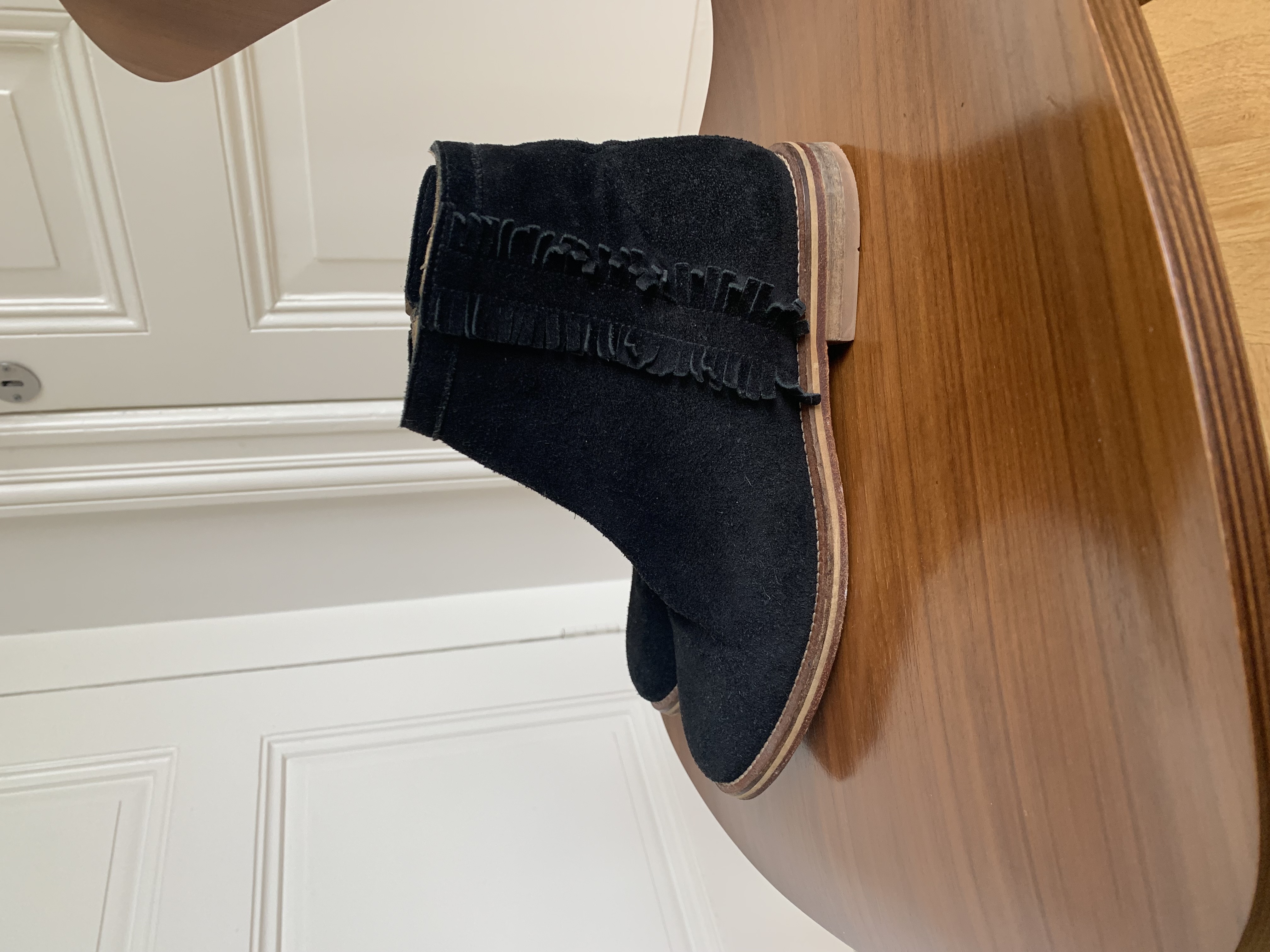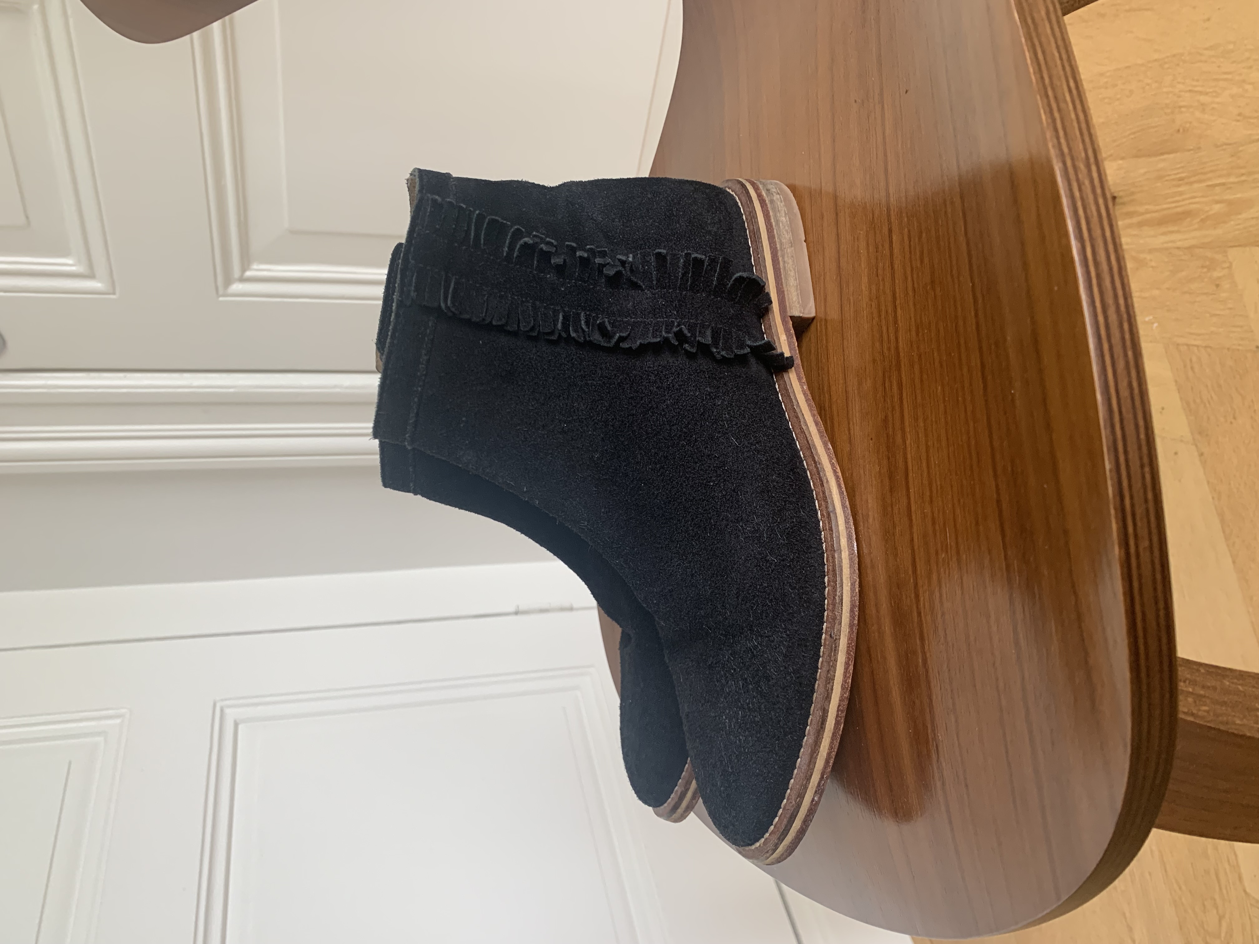 Black leather suede ankle boots for women. Size 37. Sole and lining are also leather.