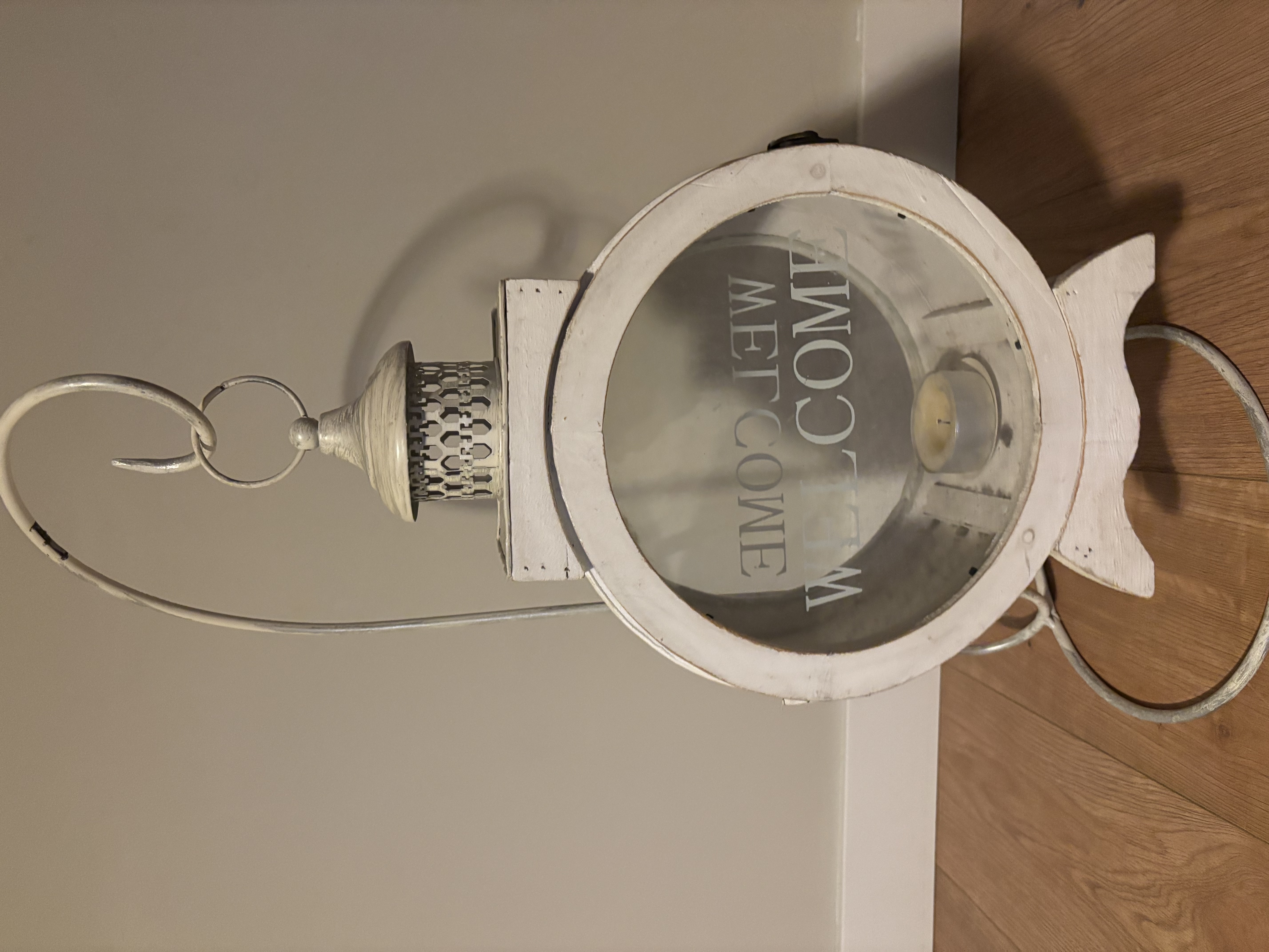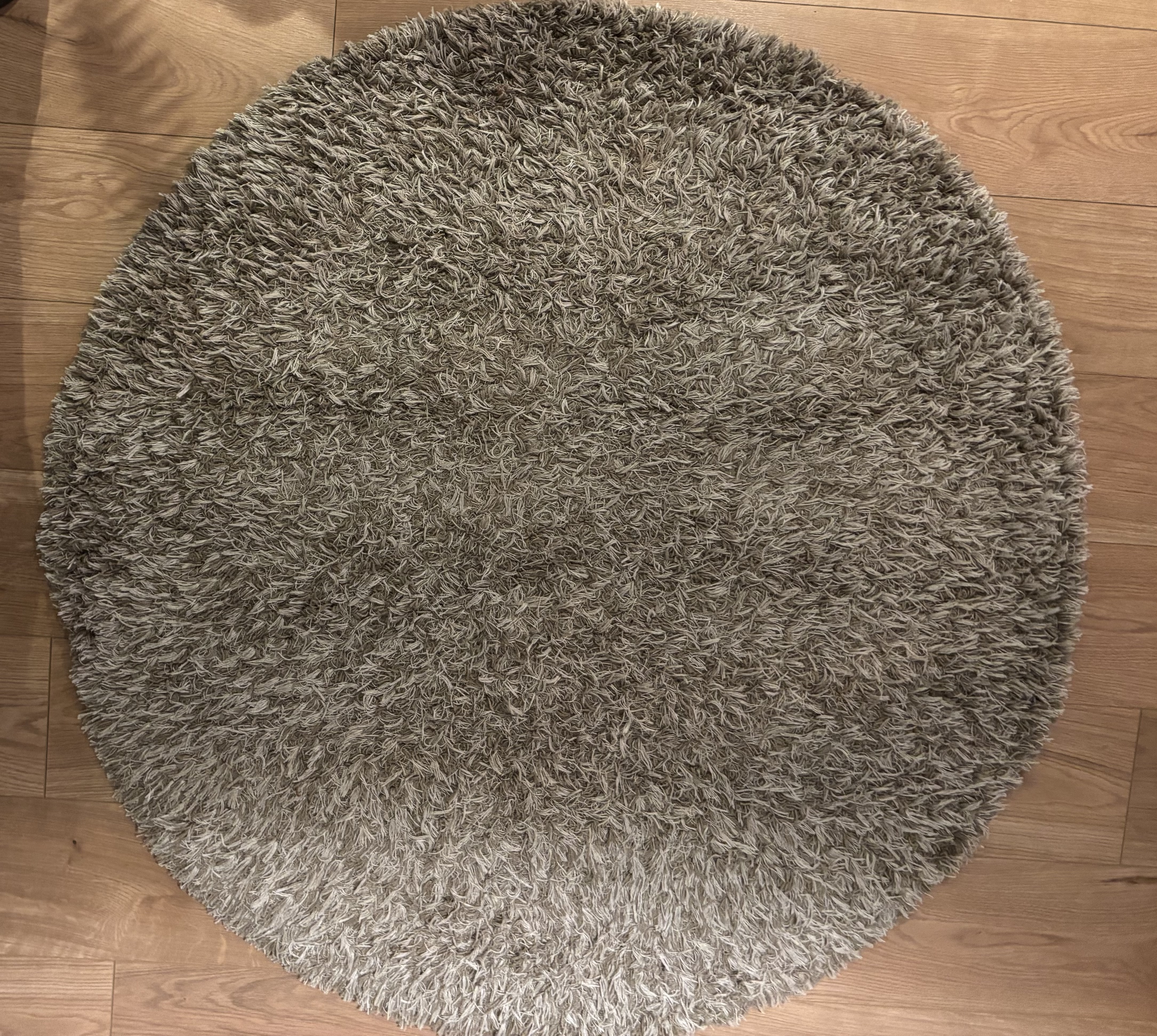 Tapis rond à poils longs, 120 cm, beige/gris clair + Lanterne sur base en métal blanc/gris