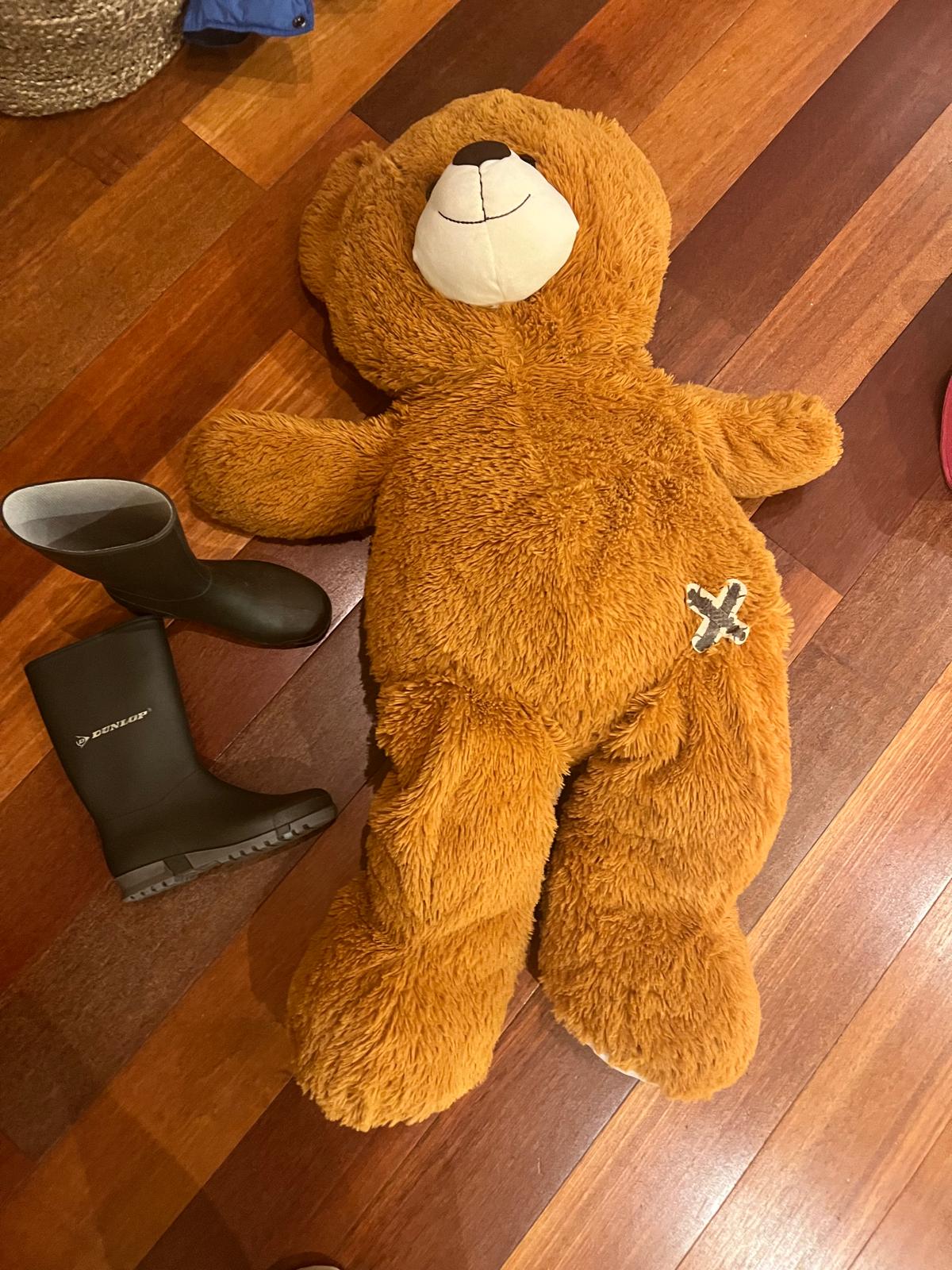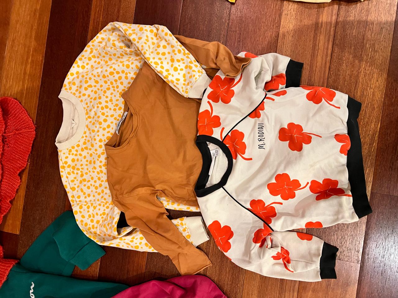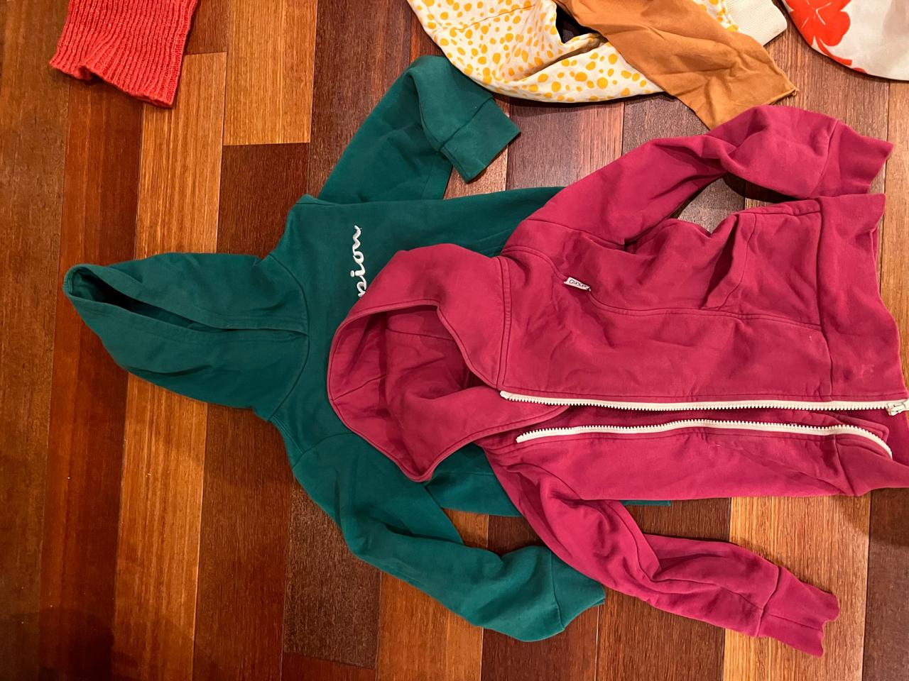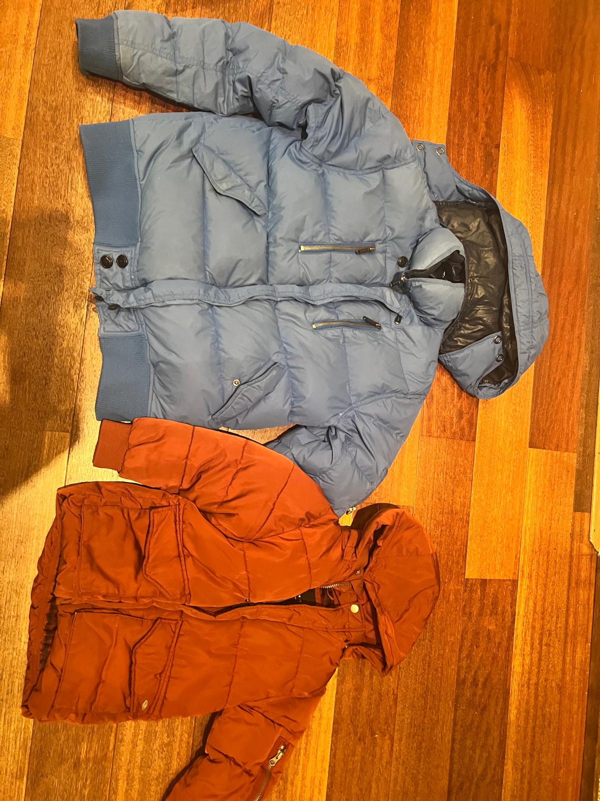 Manteau d'hiver chaud taille 116 (enfant/homme), en parfait état. Manteau d'hiver chaud taille M, en parfait état. Gilets et pulls en coton, tailles 4-6 ans. Pull, taille 8 ans. Bottes de pluie enfant, taille 31. Bottes à talons femme, taille 41 x 2. Grand ours en peluche.