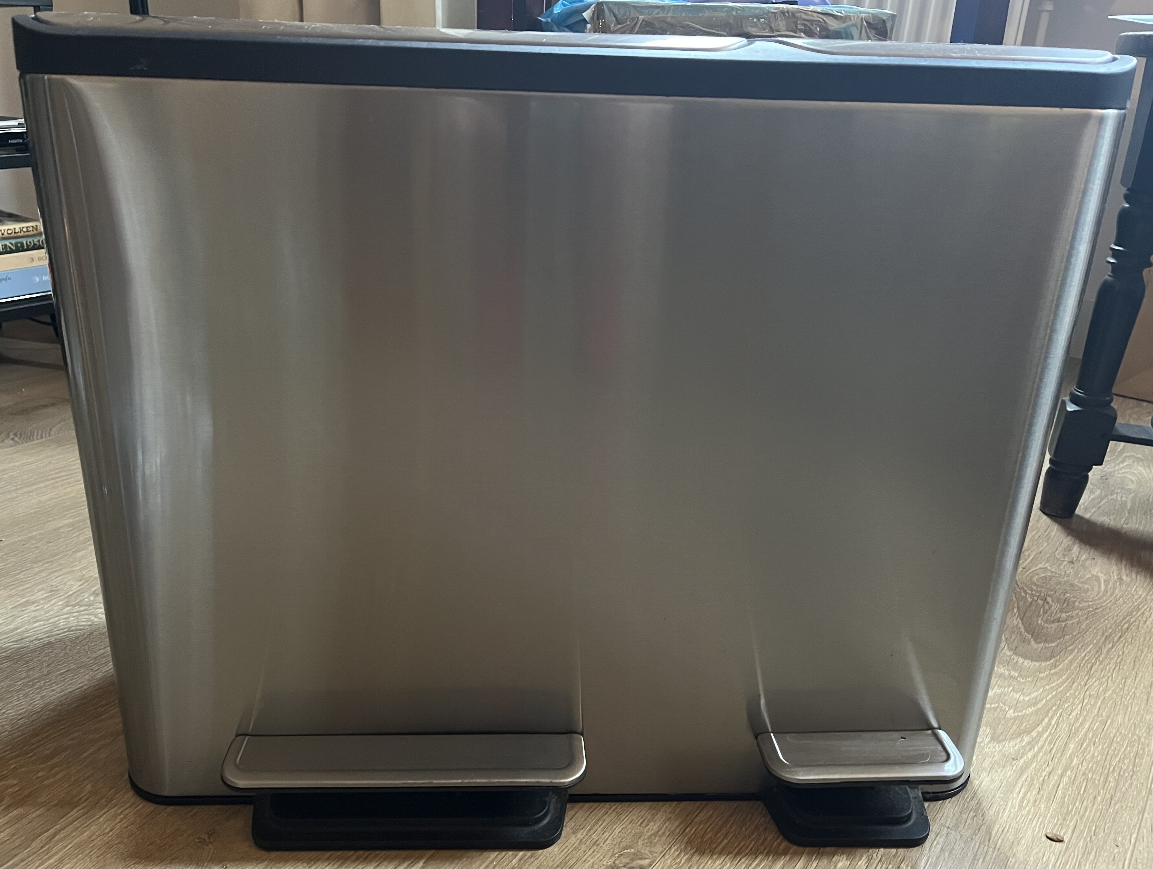 Afvalbak met drie emmers van elk 15 liter. Is gebruikt, maar schoon en netjes. Ik kan 'm helaas niet komen bezorgen, maar wie 'm kan vervoeren, mag 'm meenemen.