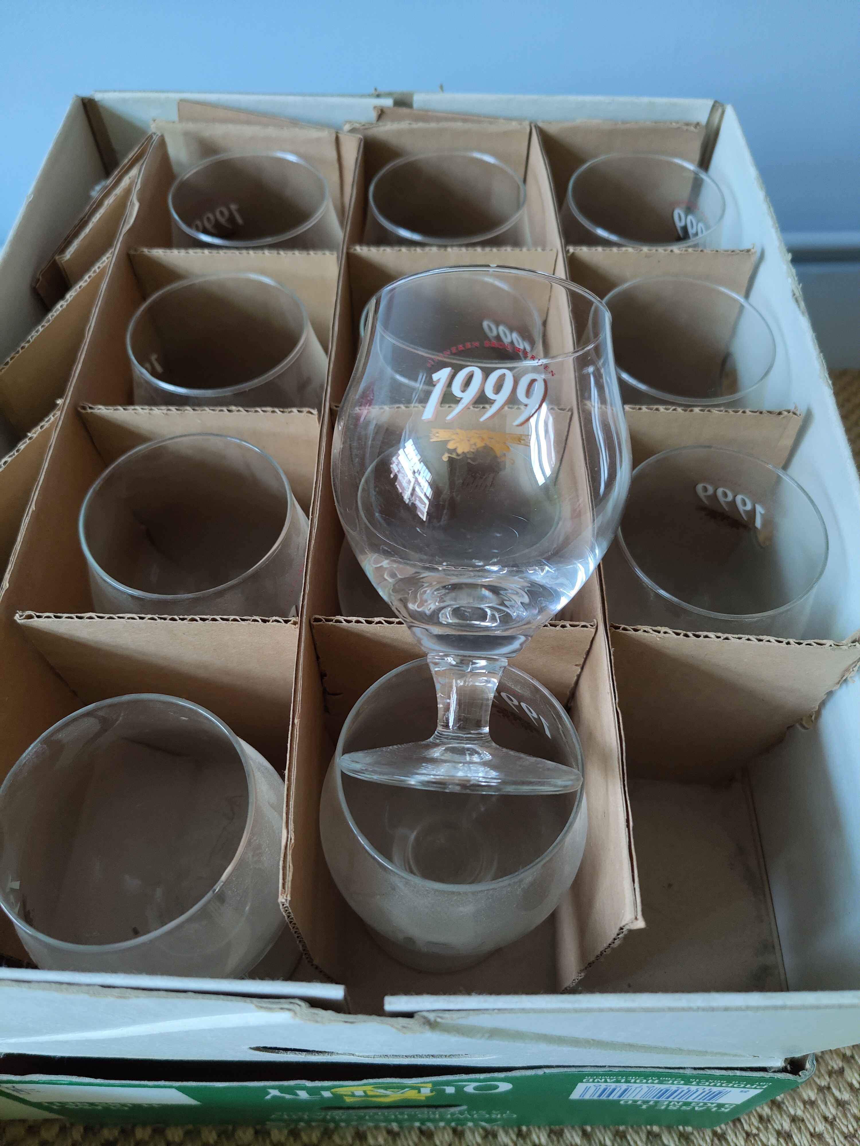 12 bierglazen op voet.