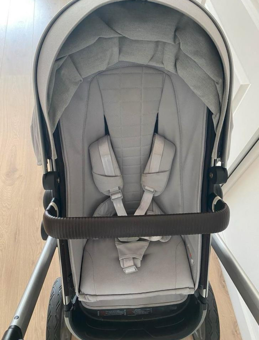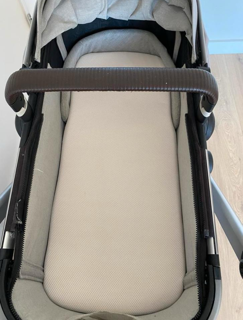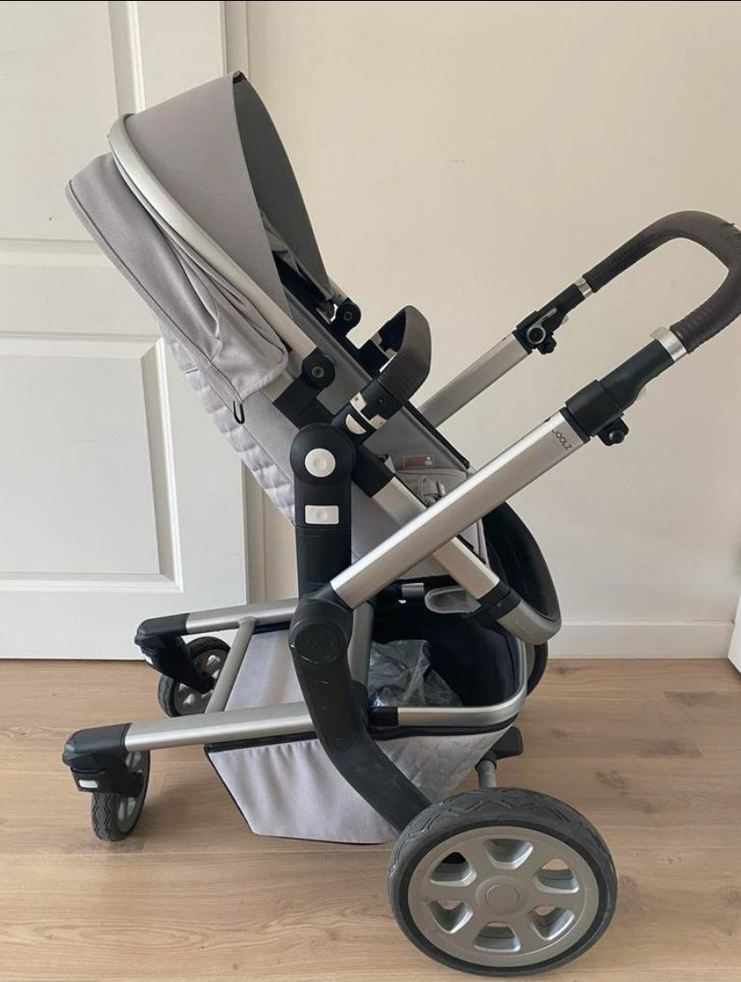Wij verkopen deze fijne kinderwagen omdat onze kindjes eruit gegroeid zijn. Altijd zuinig mee om gegaan, desondanks wel enkele gebruikerssporen, zie foto’s. Geen mankementen aan de wagen zelf. Stang is in hoogte verstelbaar. Grote boodschappenmand onderop. Meerijdplankje aan te monteren (hebben wij niet meer). Geleverd met parasolletje, wandelwagenbak, maxi cosi houders, voetenzak (nog niet op de foto). Even een sopje en perfect voor de volgende ronde(s)!