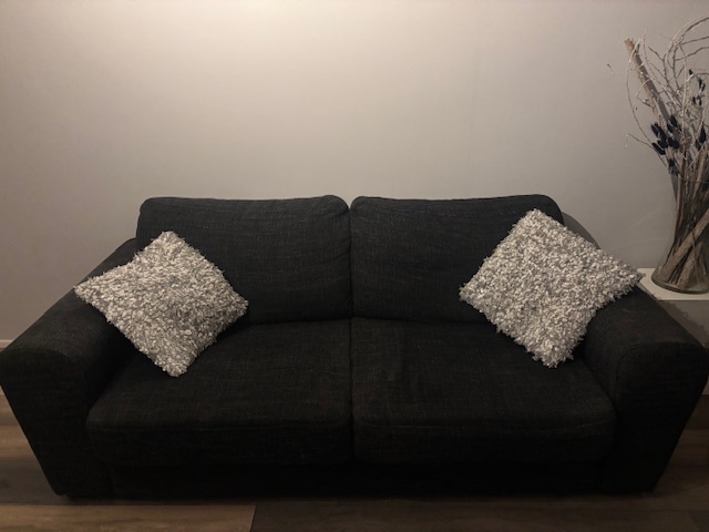İyi durumda antrasit renkli kanepe. Genişliği 210 cm. 29 Ocak'tan itibaren teslim alınabilir.