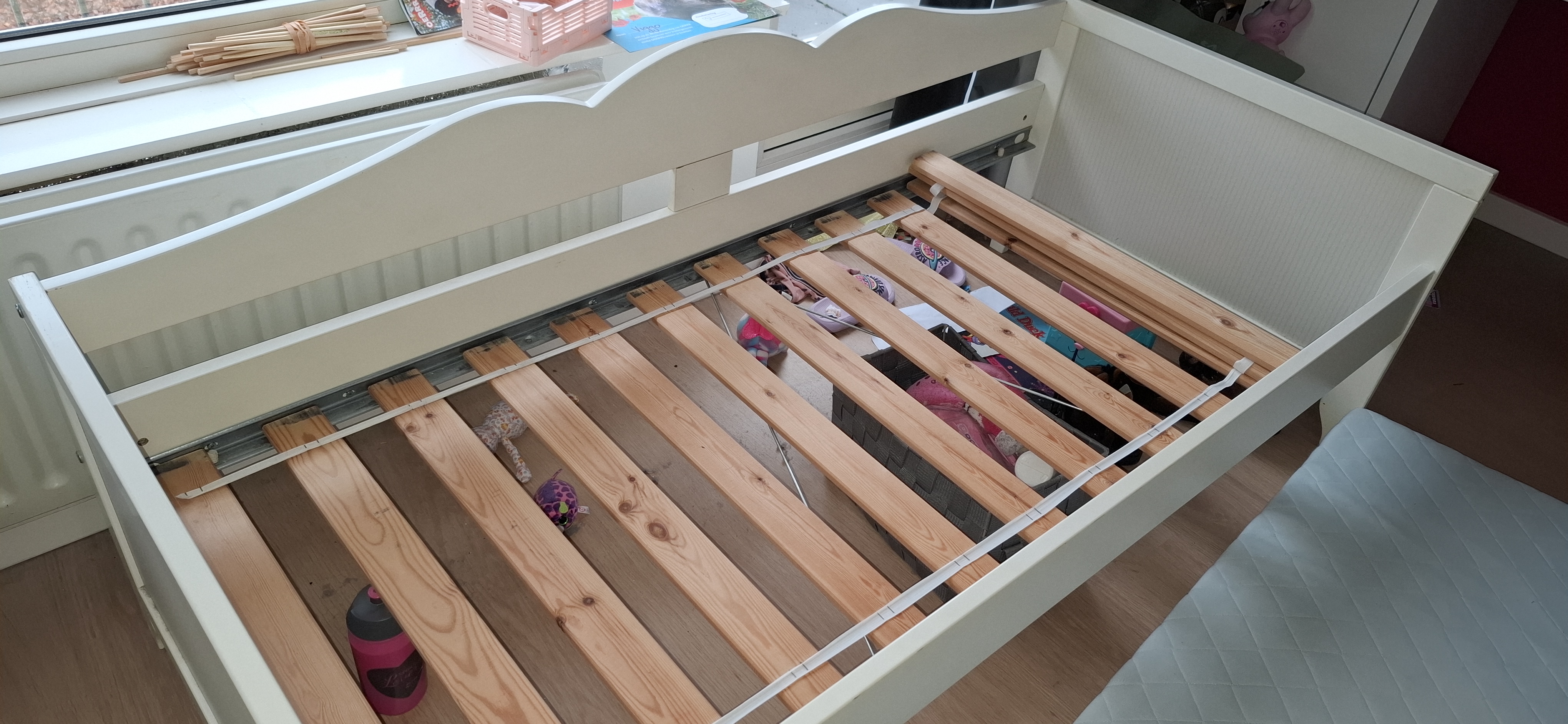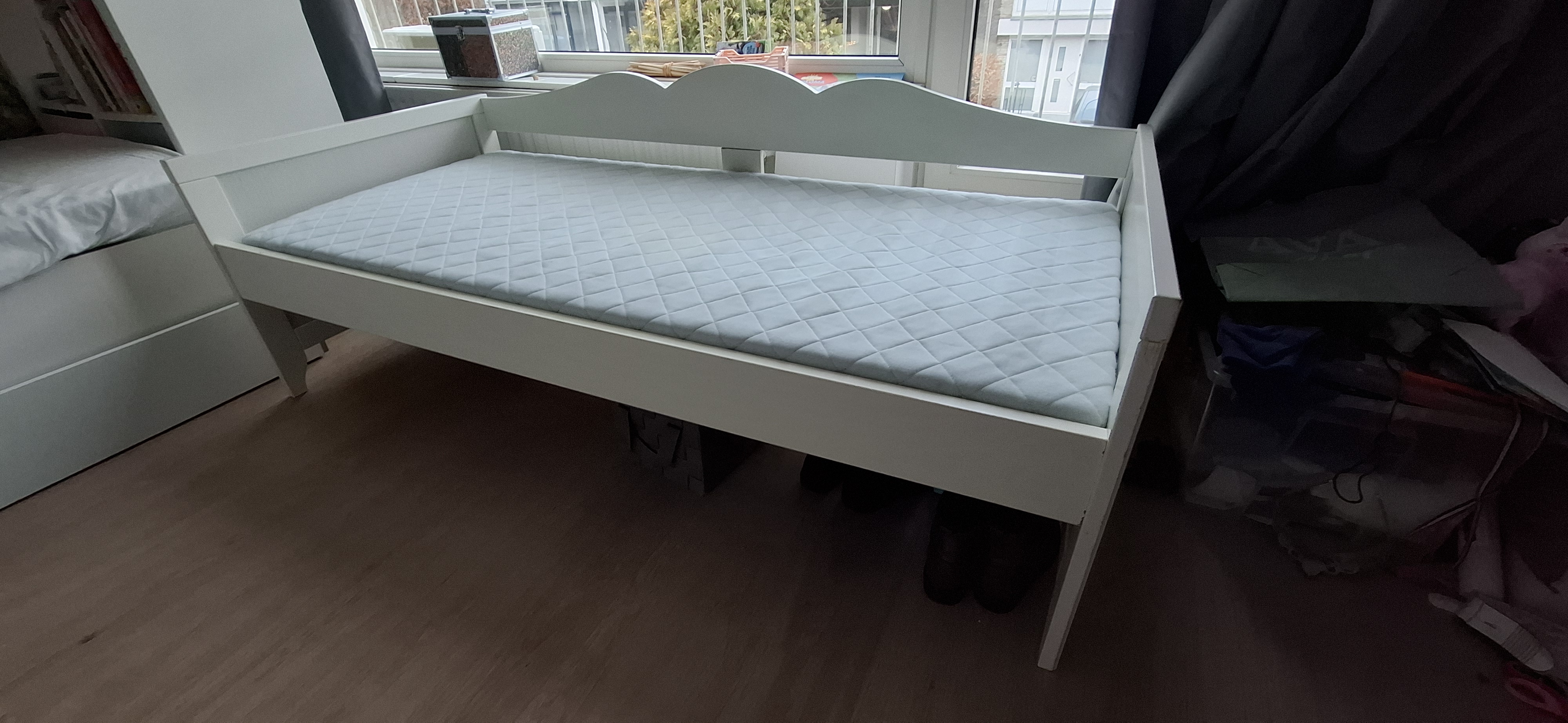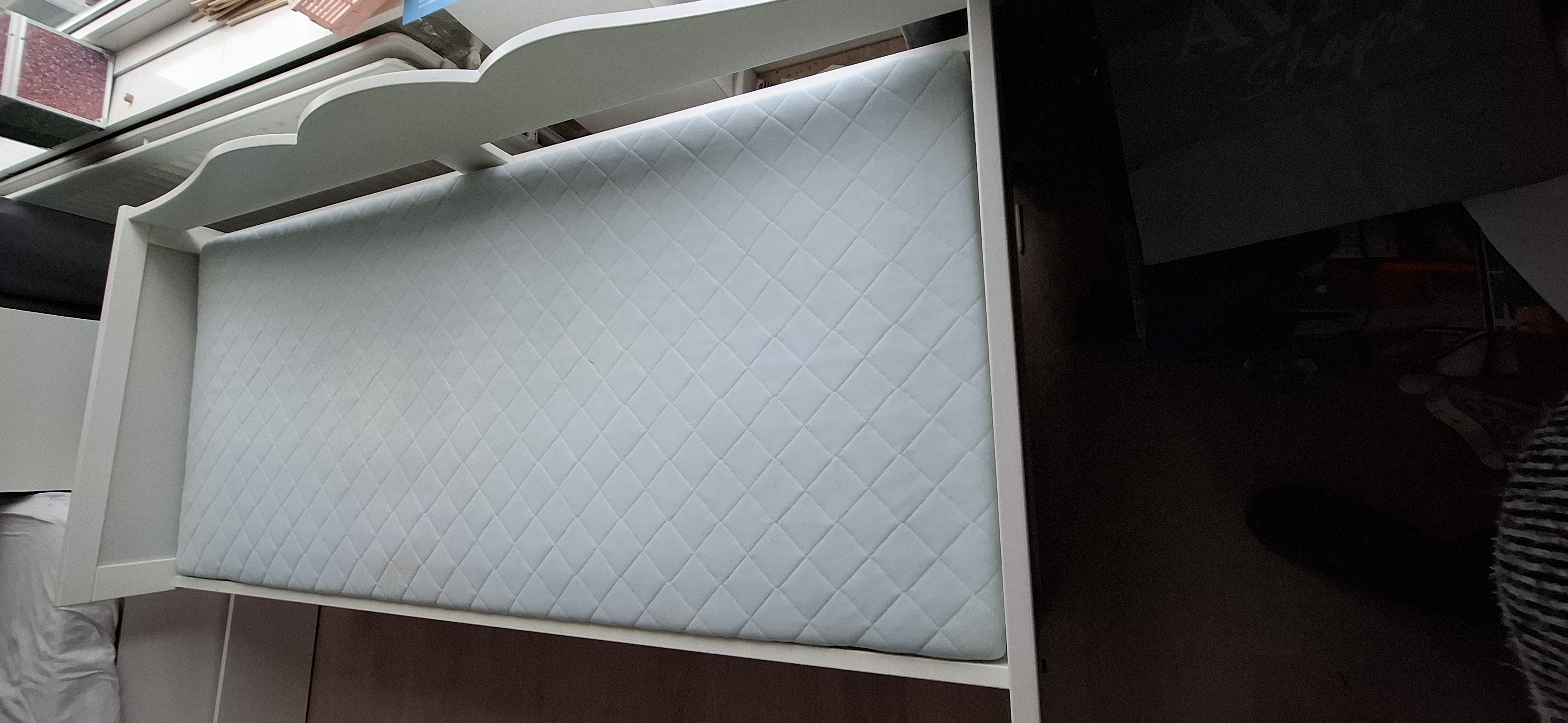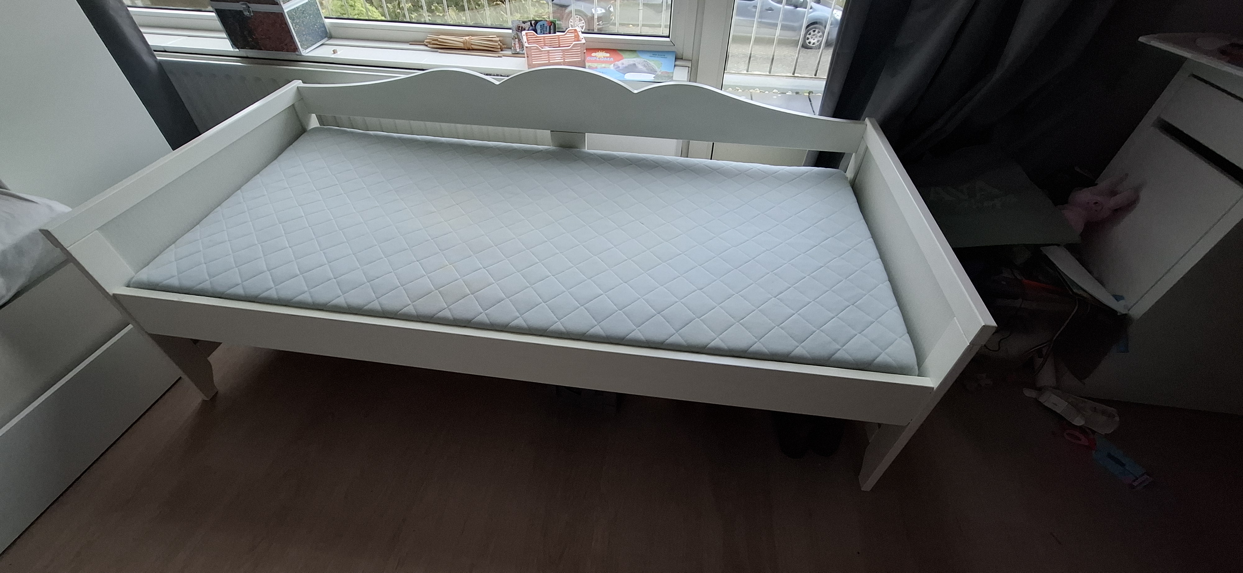 Çocuk yatağı beyaz ahşap, şilteli 160 cm uzunluğunda 70 cm genişliğinde