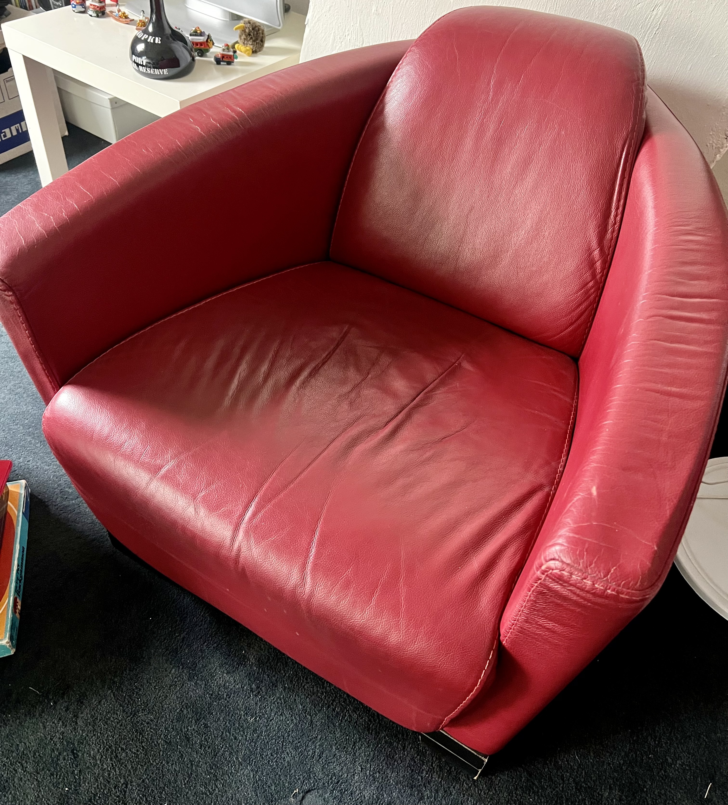 Крісло бордового кольору зі штучної шкіри. Дуже зручне. Безкоштовний самовивіз у Гілверсумі.